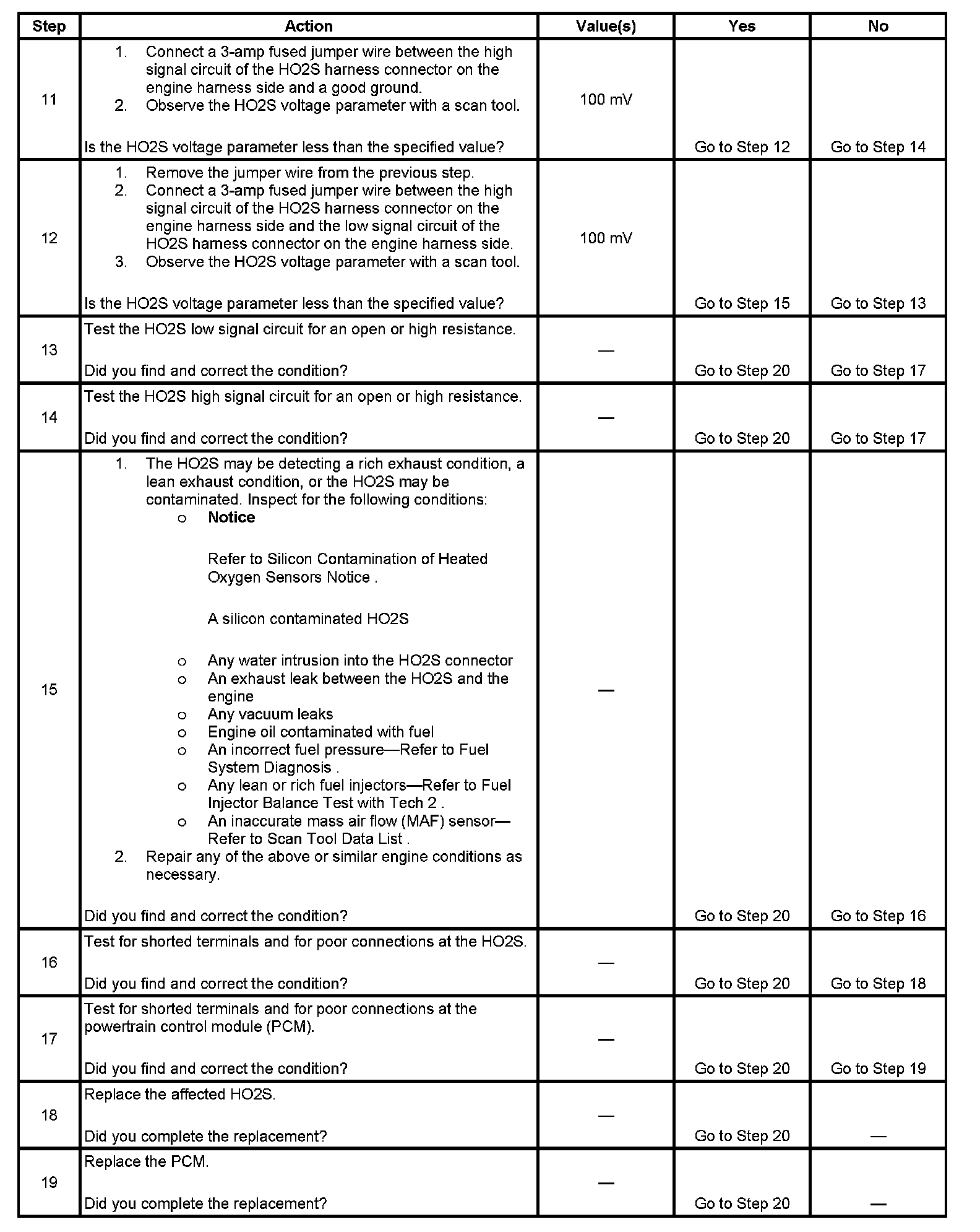 - The PCM detects that the HO2S bank 1 sensor 2 or HO2S bank 2 sensor 2 is less than 710 mV for 60 seconds.
