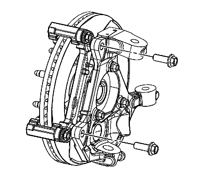 7. Remove the brake caliper bracket bolts.
