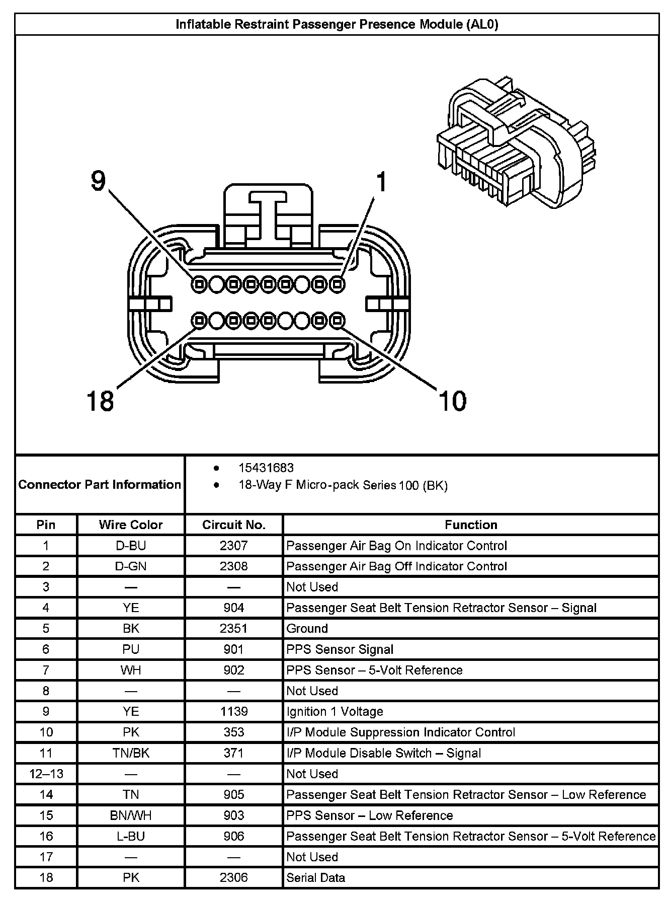 Inflatable Restraint Passenger Presence Module (With RPO Code ALO):
