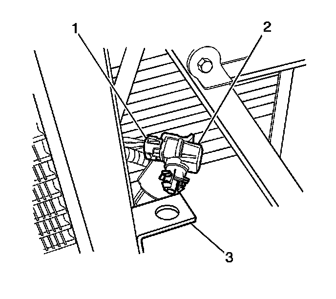 3. Remove the ambient air temperature sensor (2) from the SGCM radiator bracket (3).