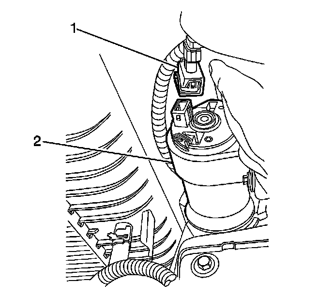 6. Disconnect the electrical connector (1) from the SGCM coolant pump (2).