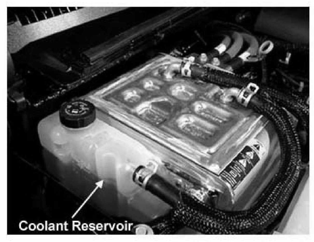 - The 42-volt batteries are enclosed in a metal box whose lid is secured with Trox bit bolts.