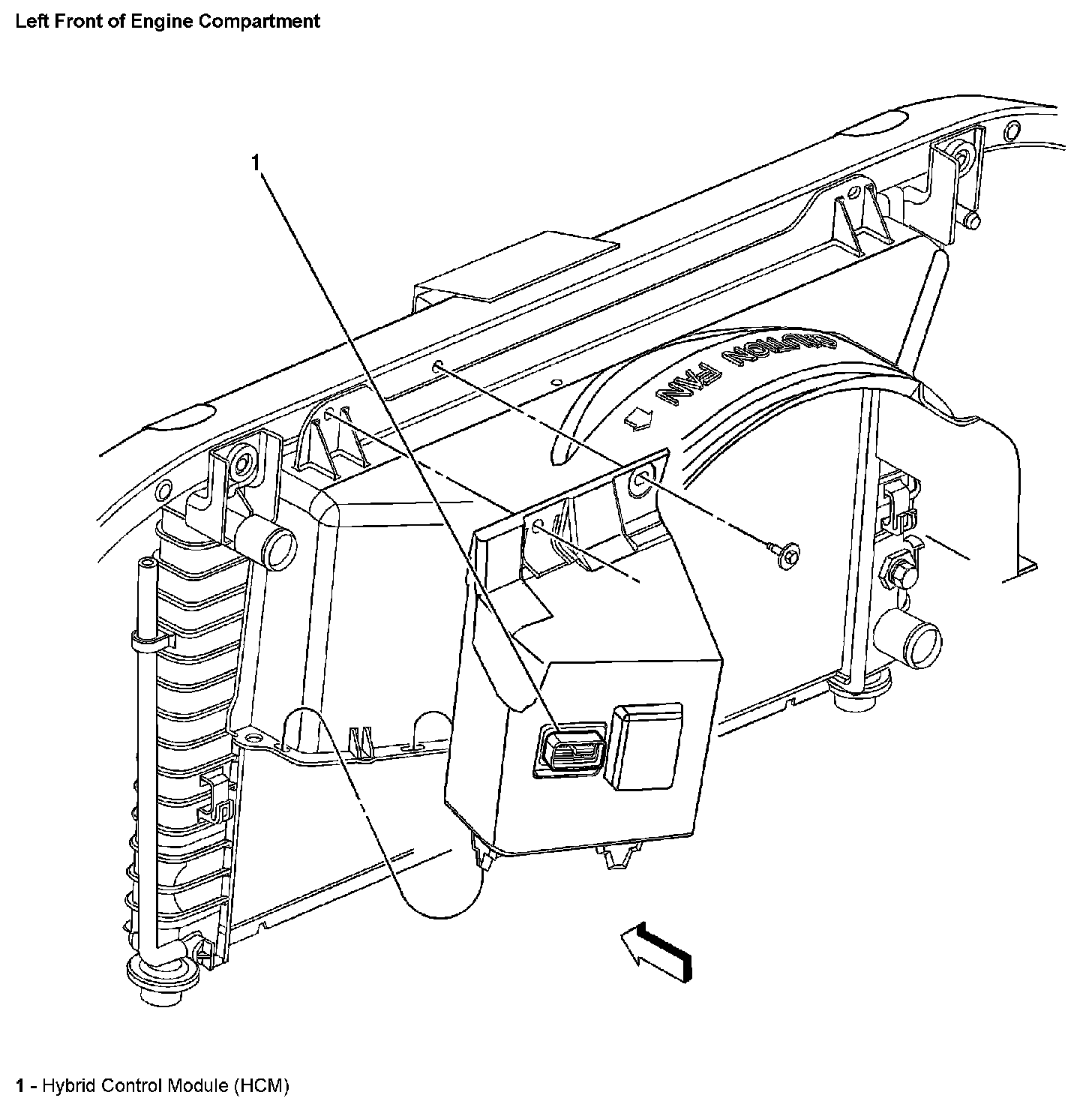 Left Front Of Engine Compartment: