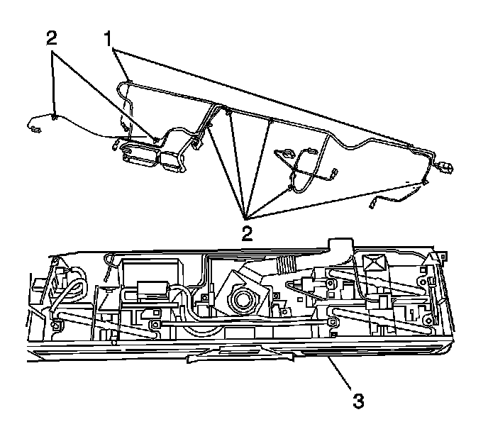 10. Disengage the retainers (1, 2) securing the harness.