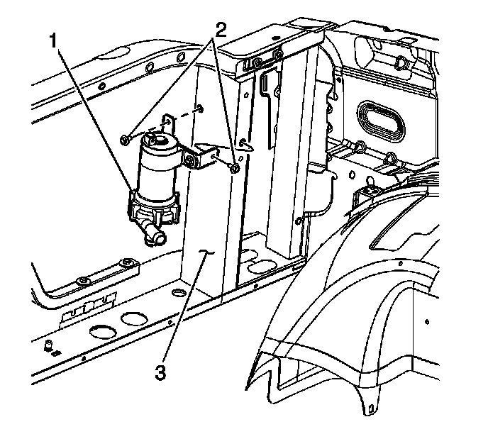 6. Reposition the SGCM coolant pump (1) from the radiator core support (3).