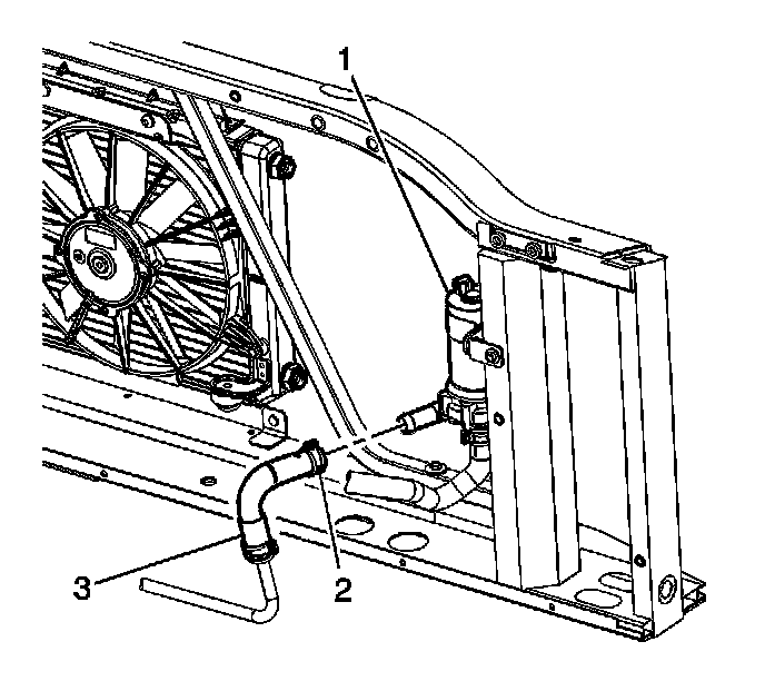 1. Install the SGCM coolant pump outlet hose (3) to the vehicle.