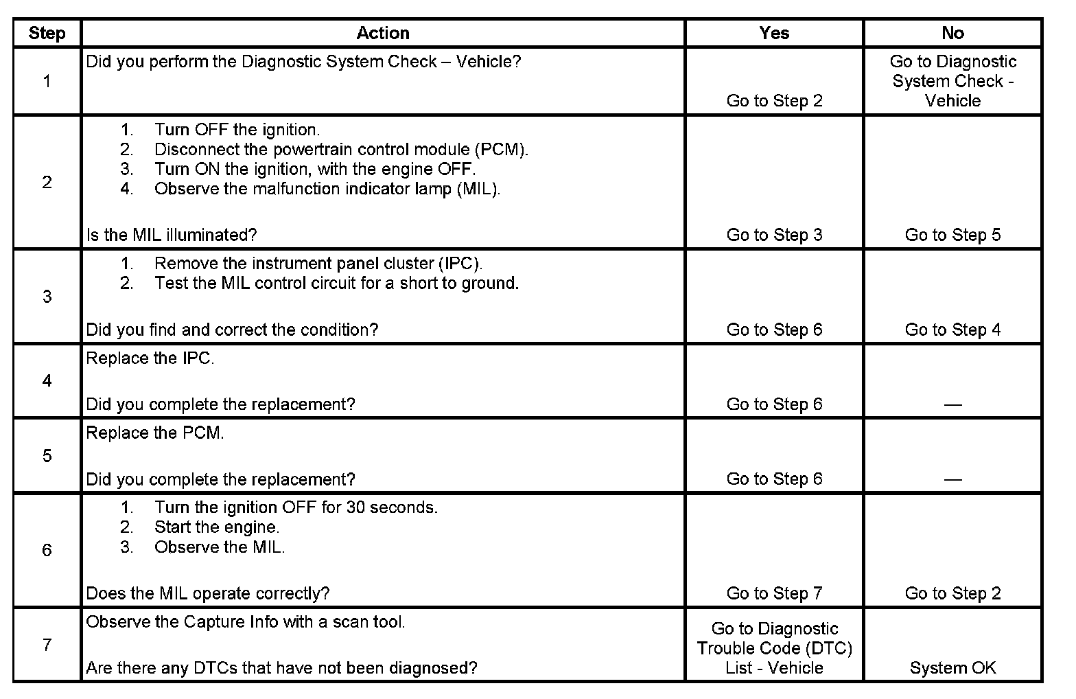 2. This step determines if the condition is with the MIL control circuit or the PCM.