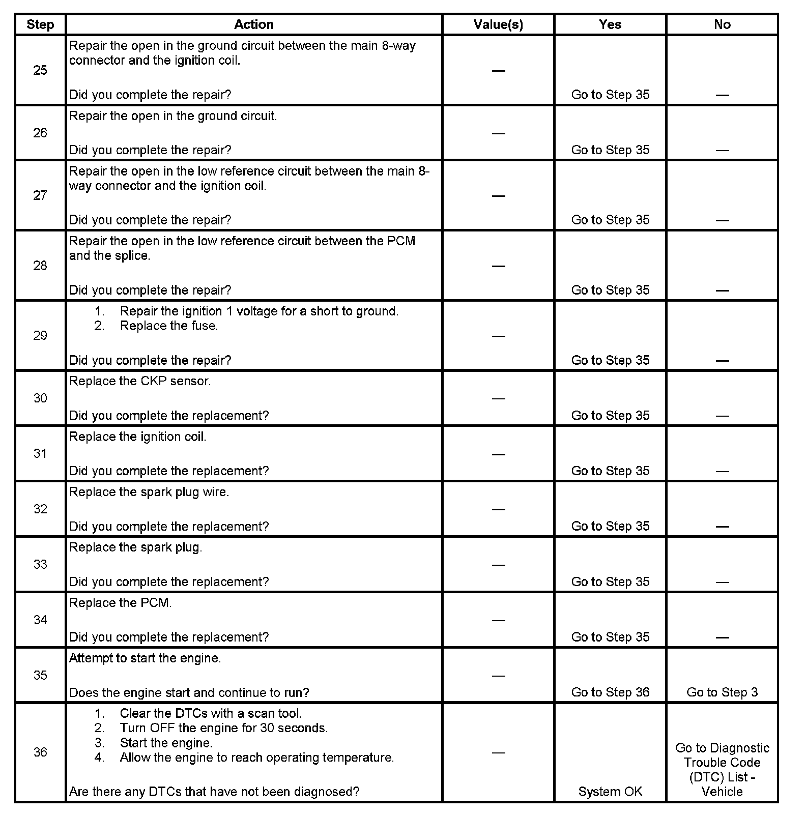 12. A good indication that the fuse is open is all off the misfire current counters are incrementing on one side of the engine. Inspect the ignition positive voltage circuit for a grounded circuit. If the fuse is open and the ignition coil circuits are OK, inspect the injector circuits for being grounded.