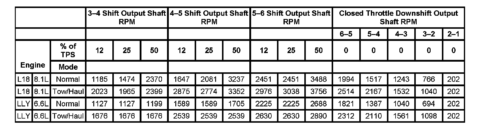 Shift Speed (3-4, 4-5, 5-6 and CT Downshifts):
