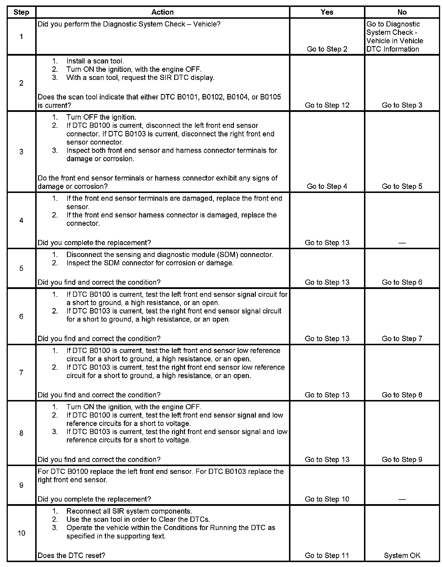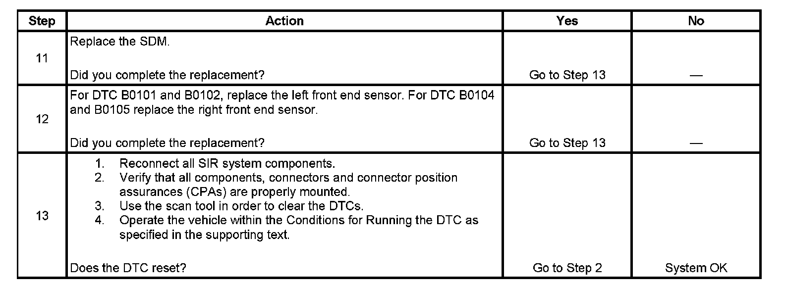 - DTC B0101 and B0104 will set when the SDM has received 4 consecutive NOK (Not OK) messages from the front end sensor.