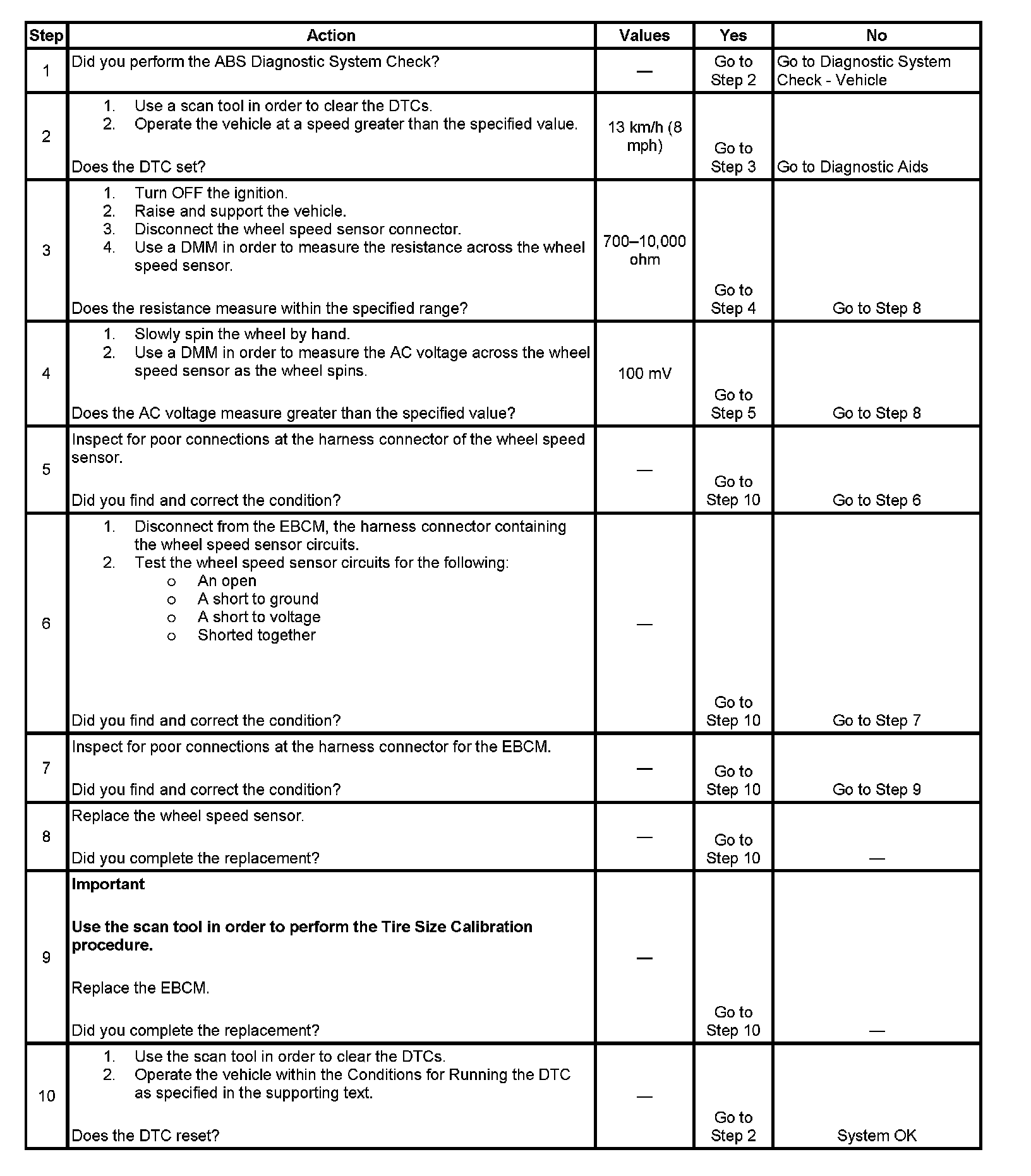 ^ The EBCM disables the ABS and may disable the dynamic rear proportion (DRP) if more than one wheel speed sensor DTC is set.
