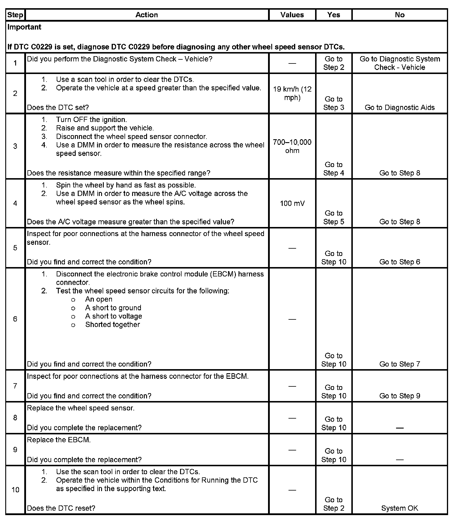 4. Ensures that the wheel speed sensor is generating a valid AC voltage output.
