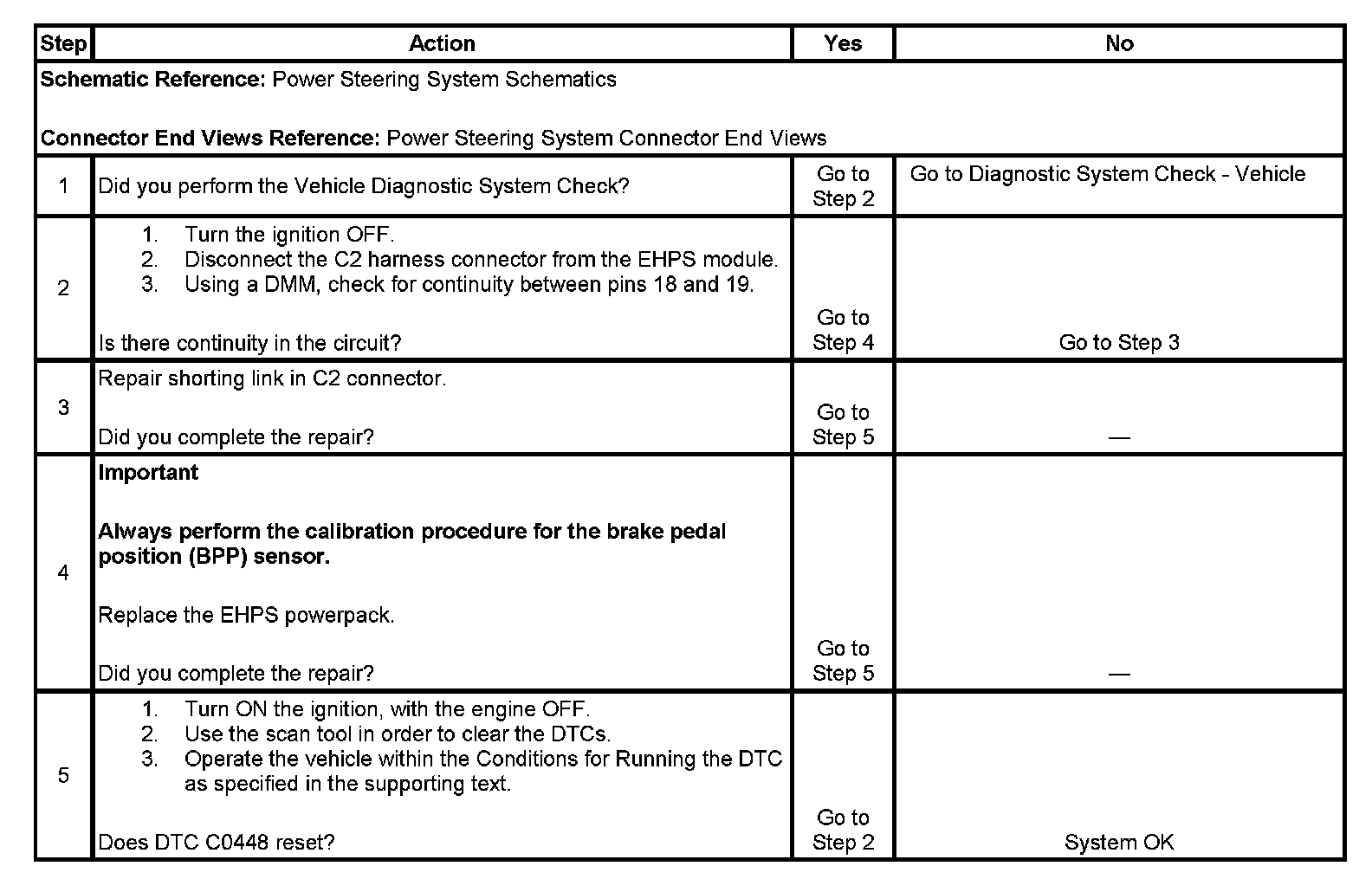 DTC C0448 Electric Hydraulic Steering Pump Enable Circuit