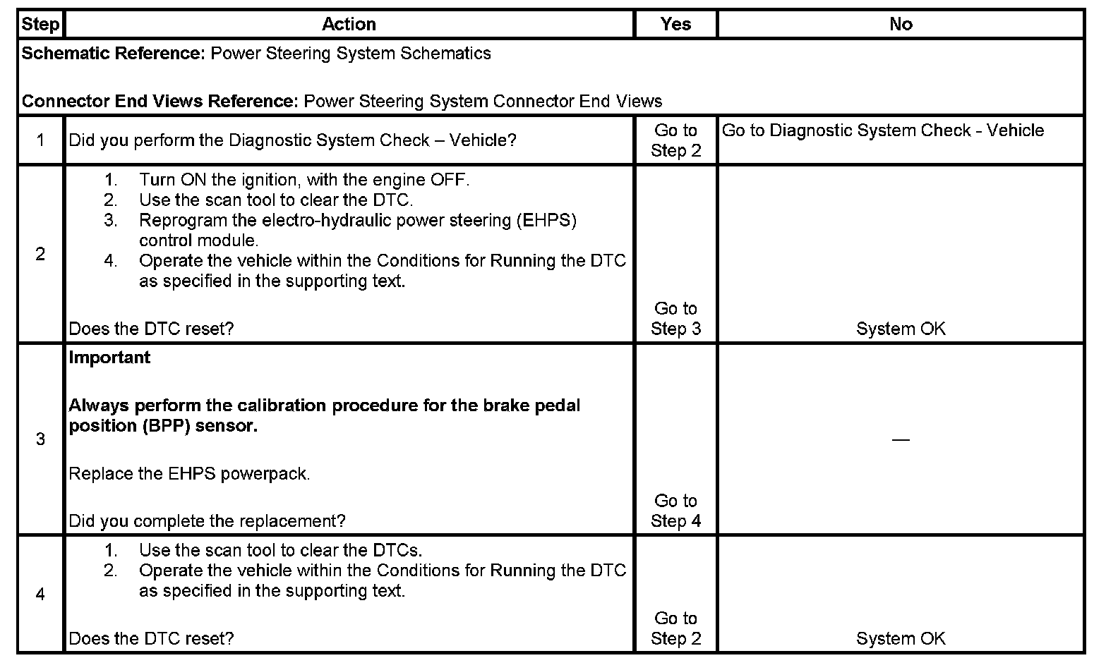 2. This step checks to see if the problem has cleared after the EHPS control module has been reprogrammed.