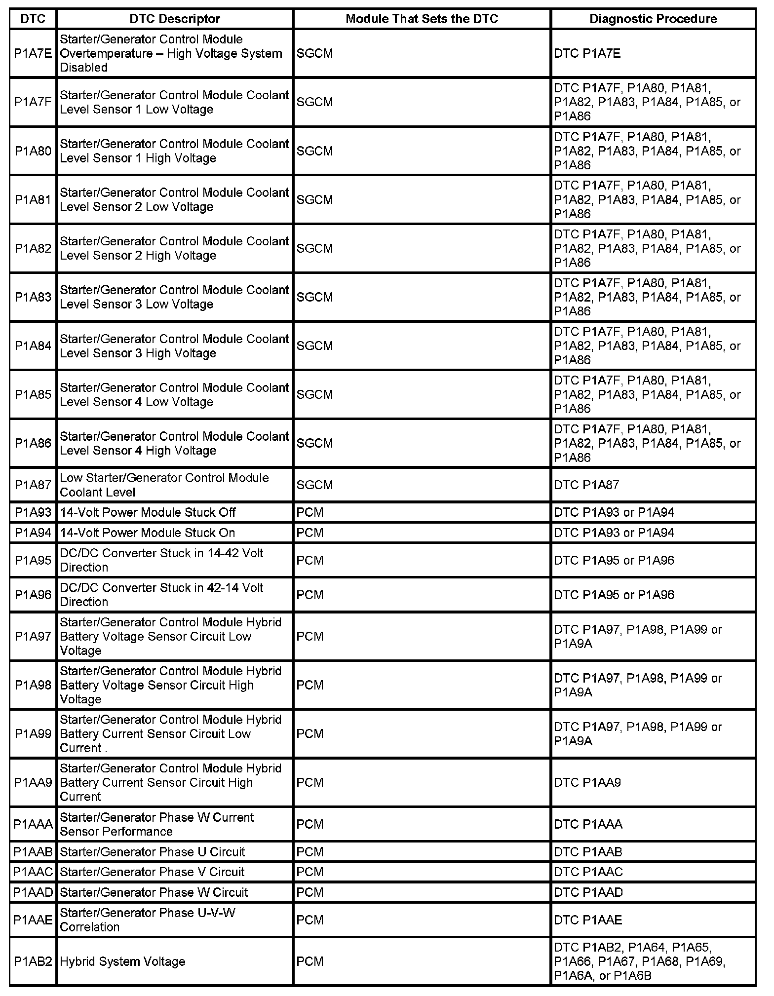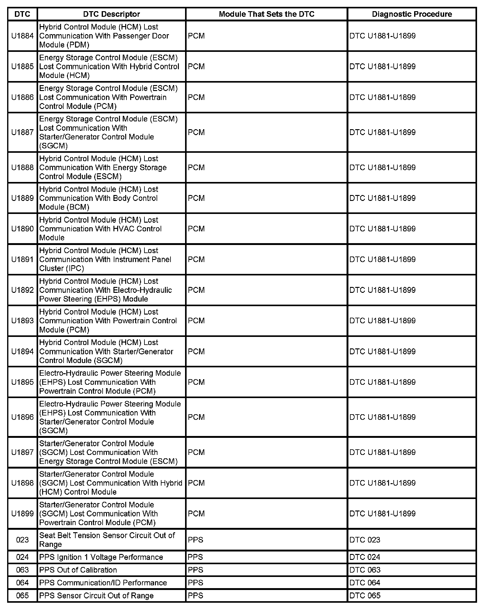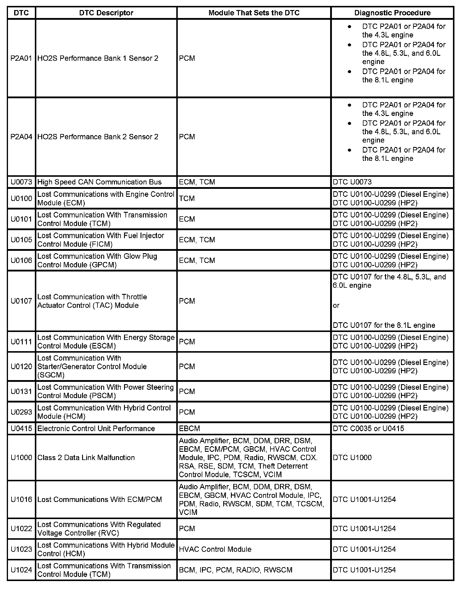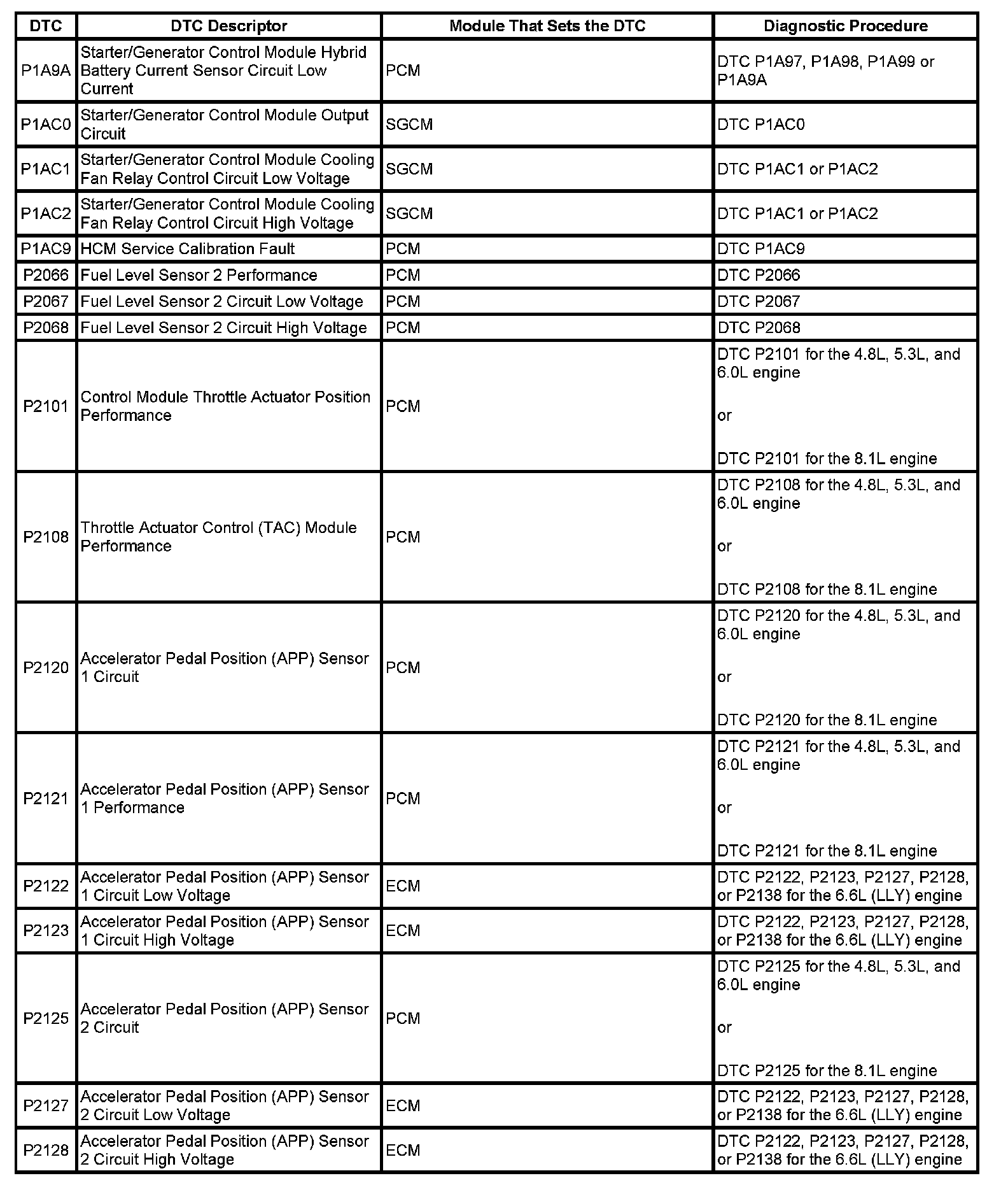 This master DTC list includes all applicable DTCs in alphanumeric order with descriptors.