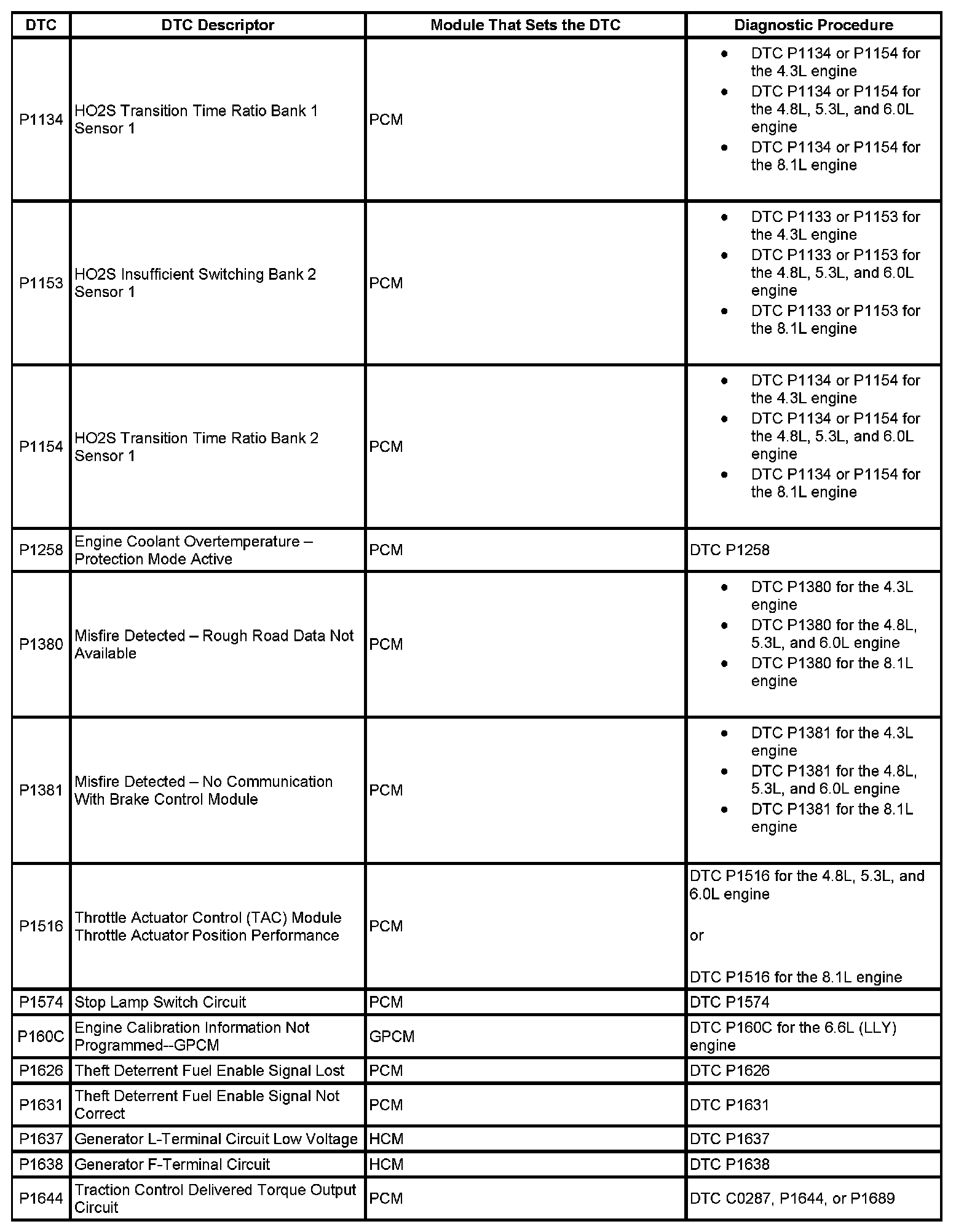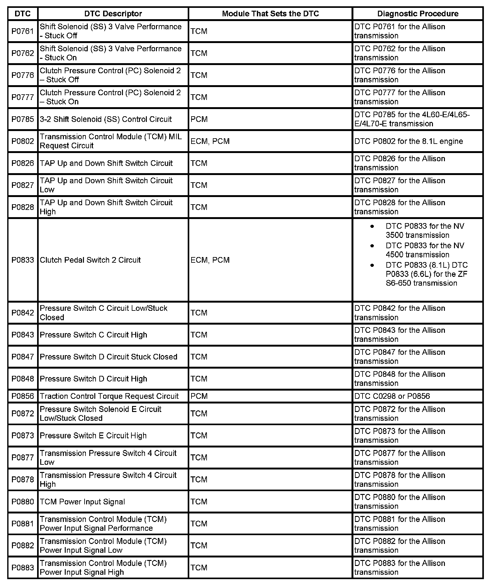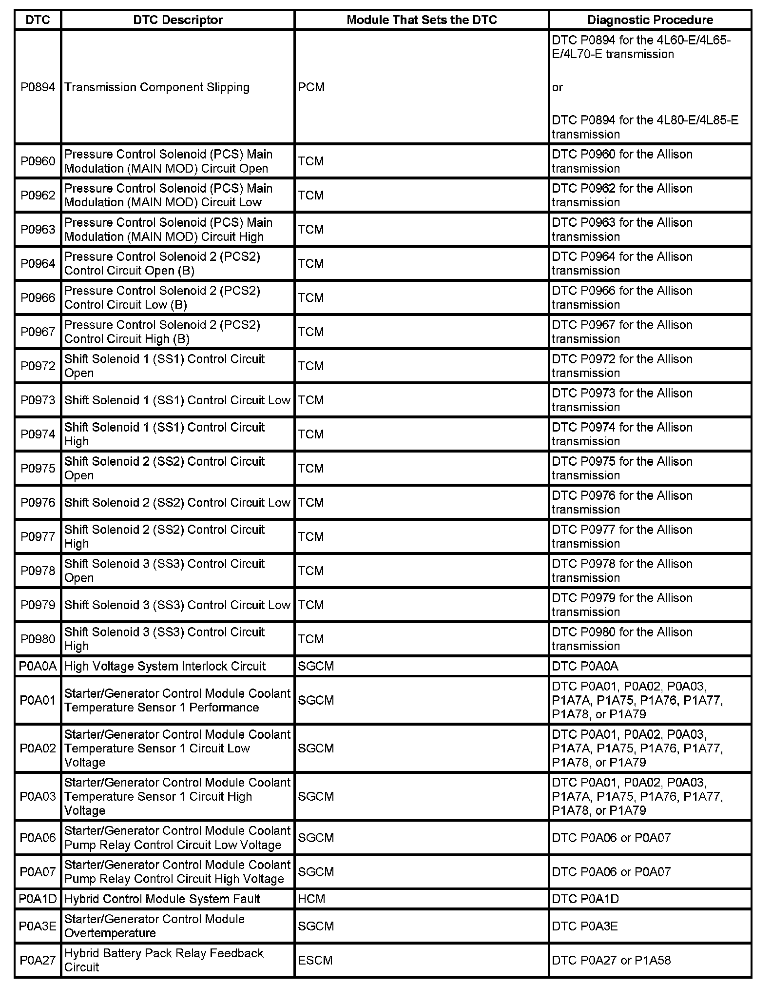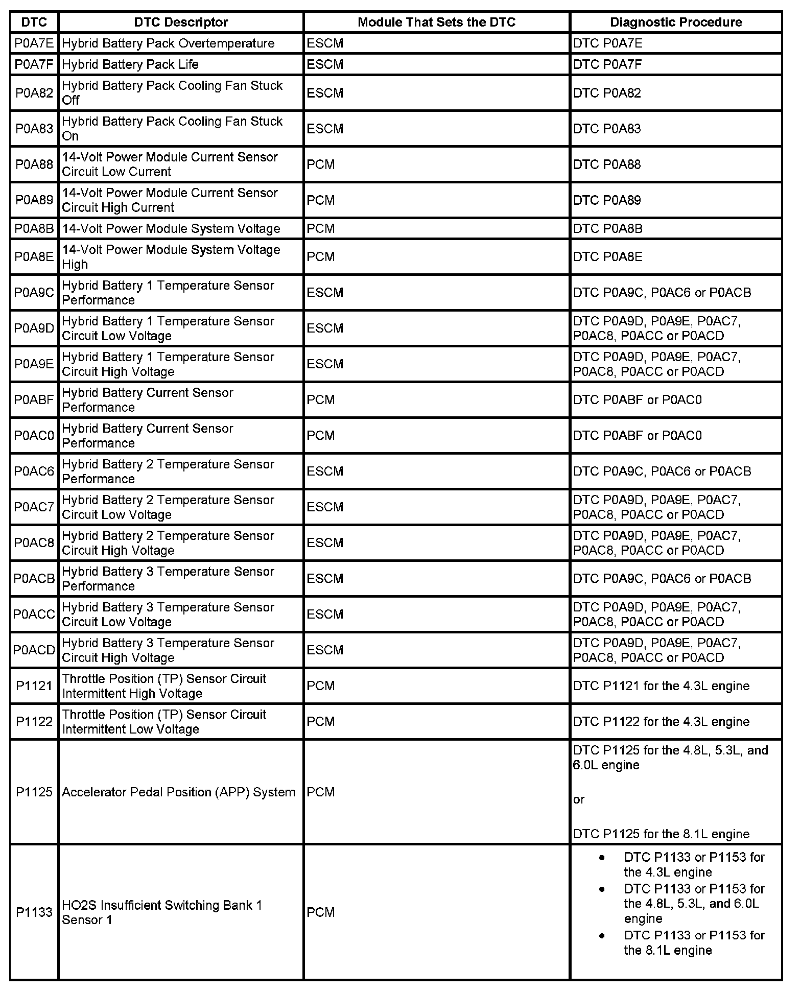 This master DTC list includes all applicable DTCs in alphanumeric order with descriptors.