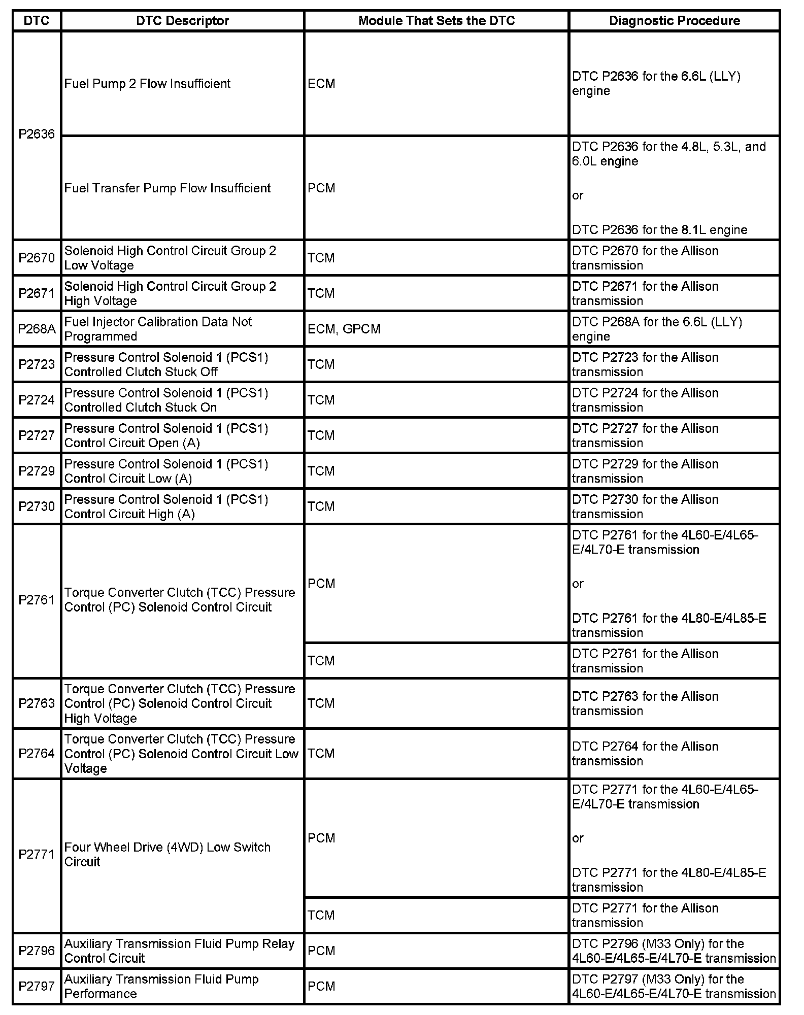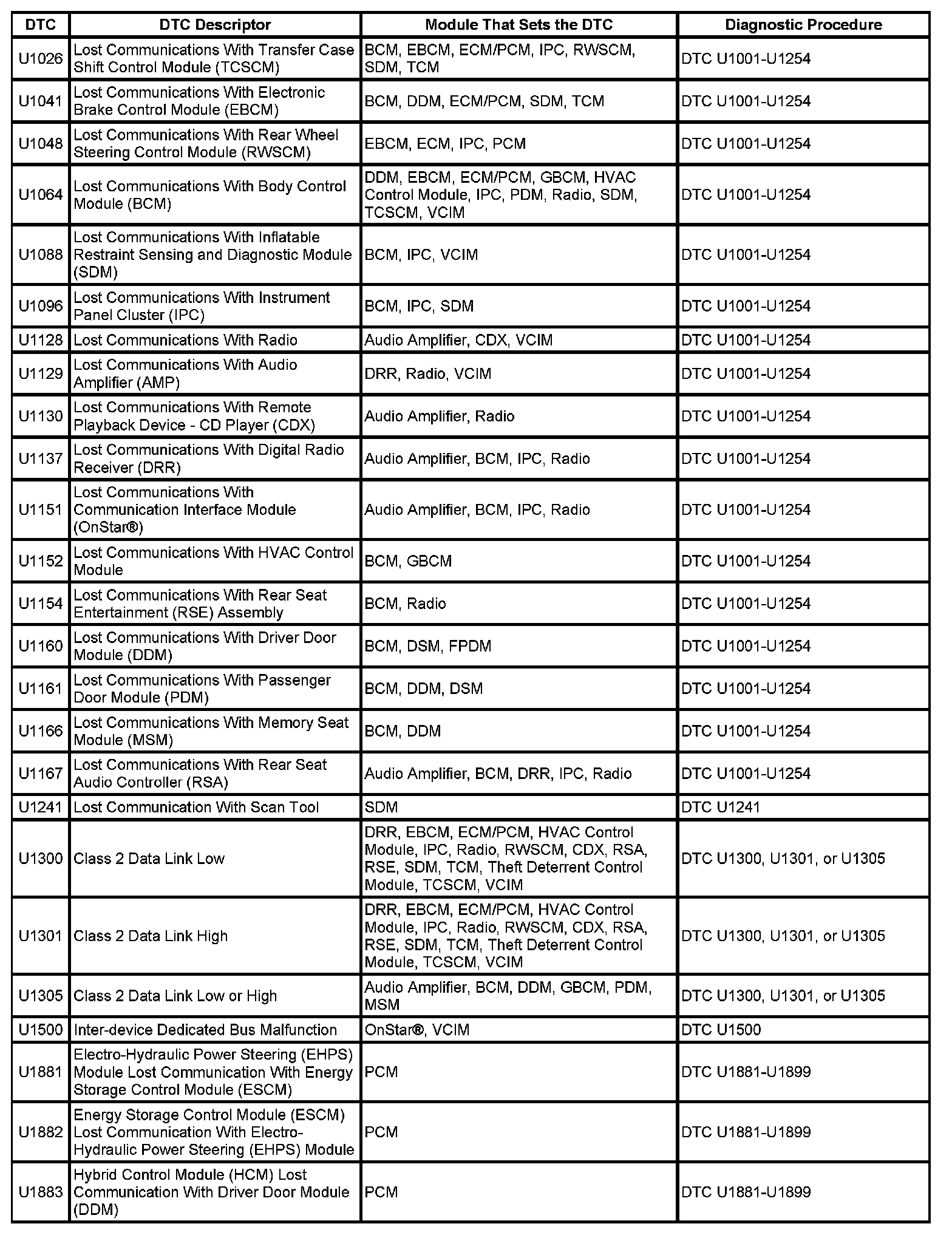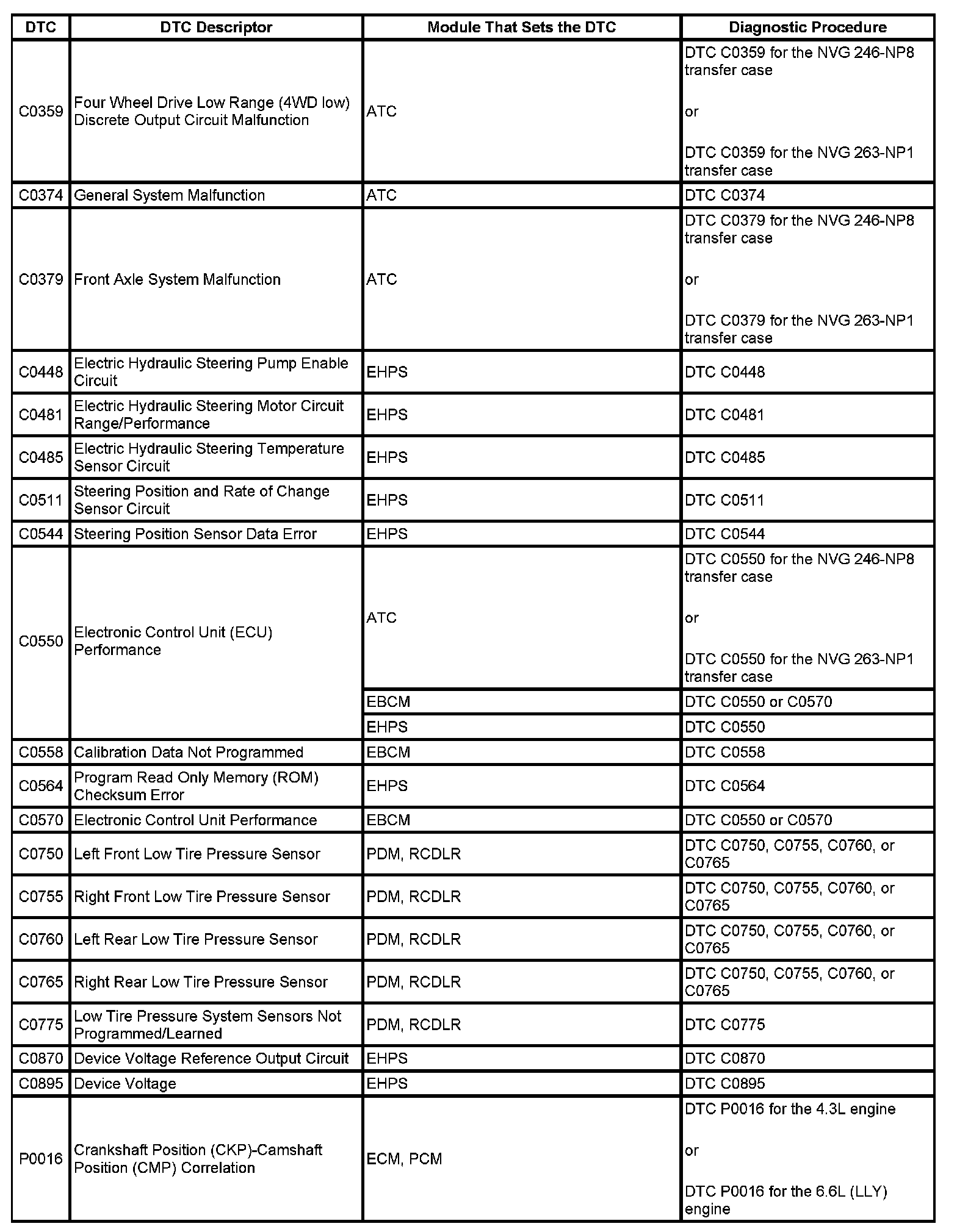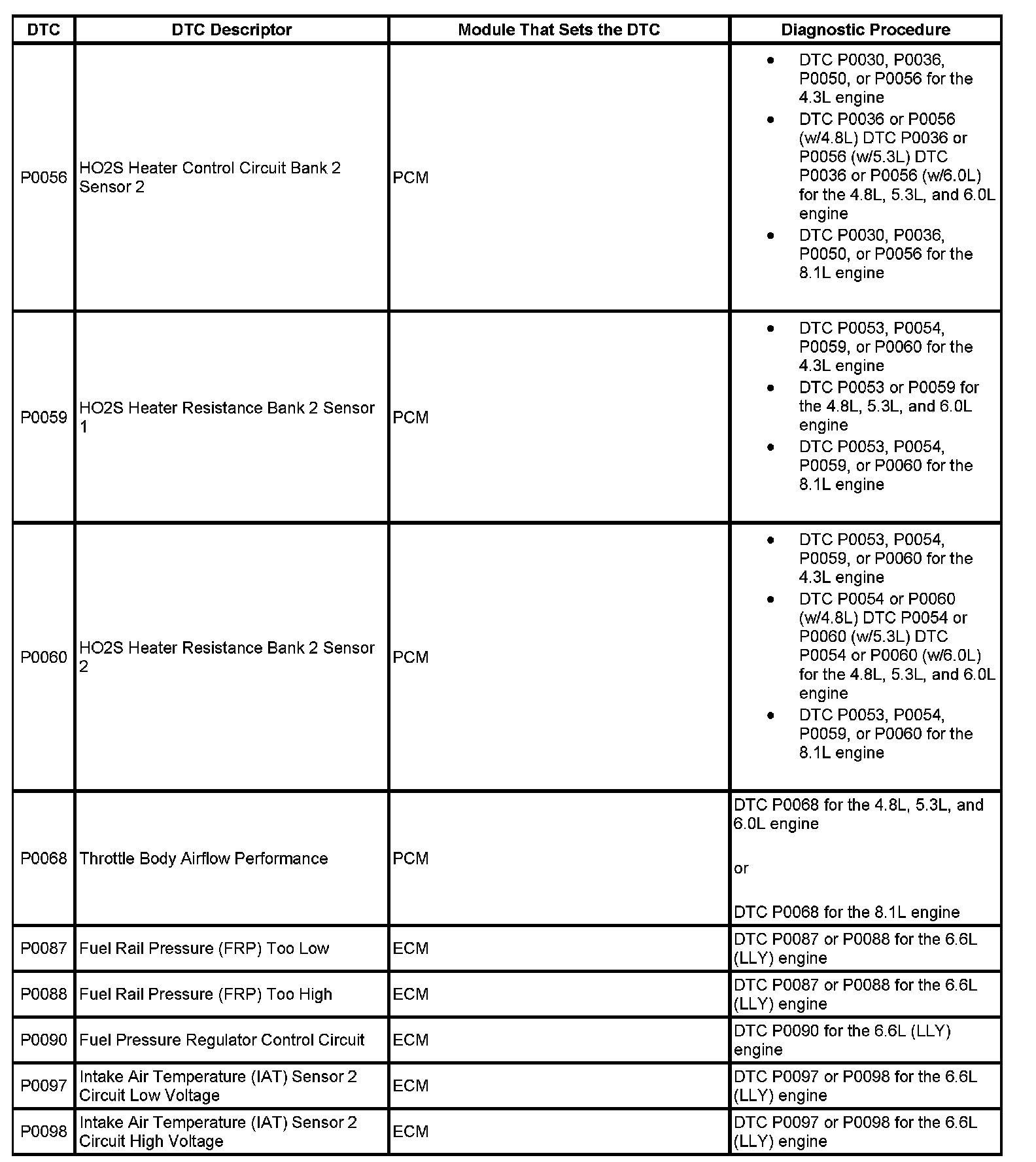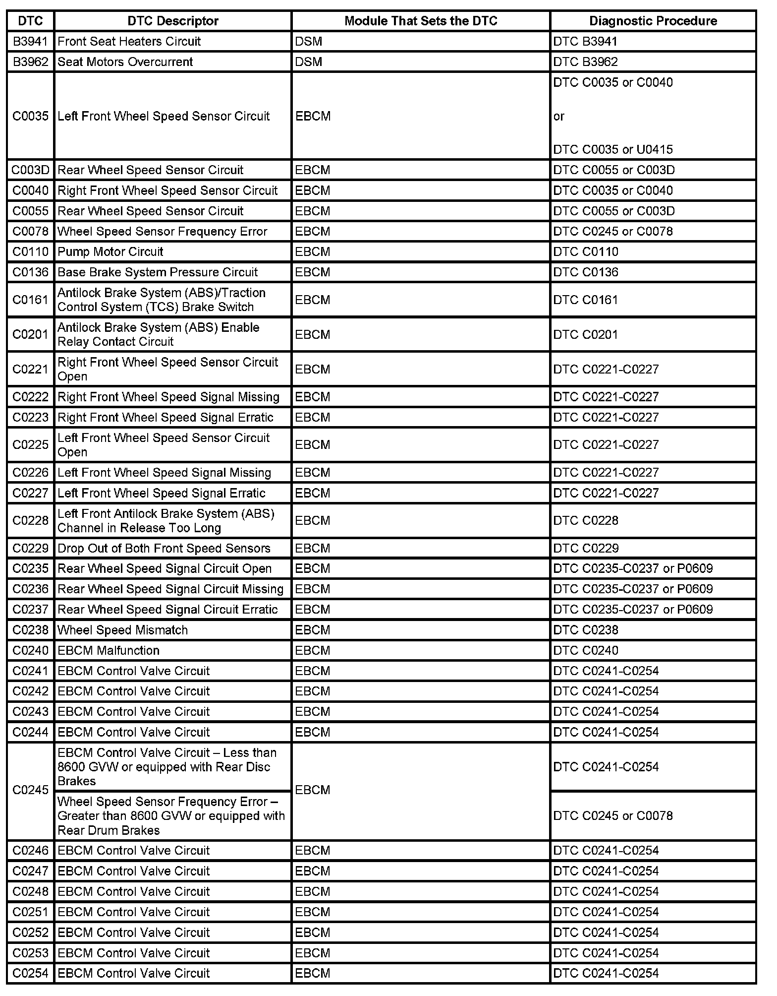 This master DTC list includes all applicable DTCs in alphanumeric order with descriptors.