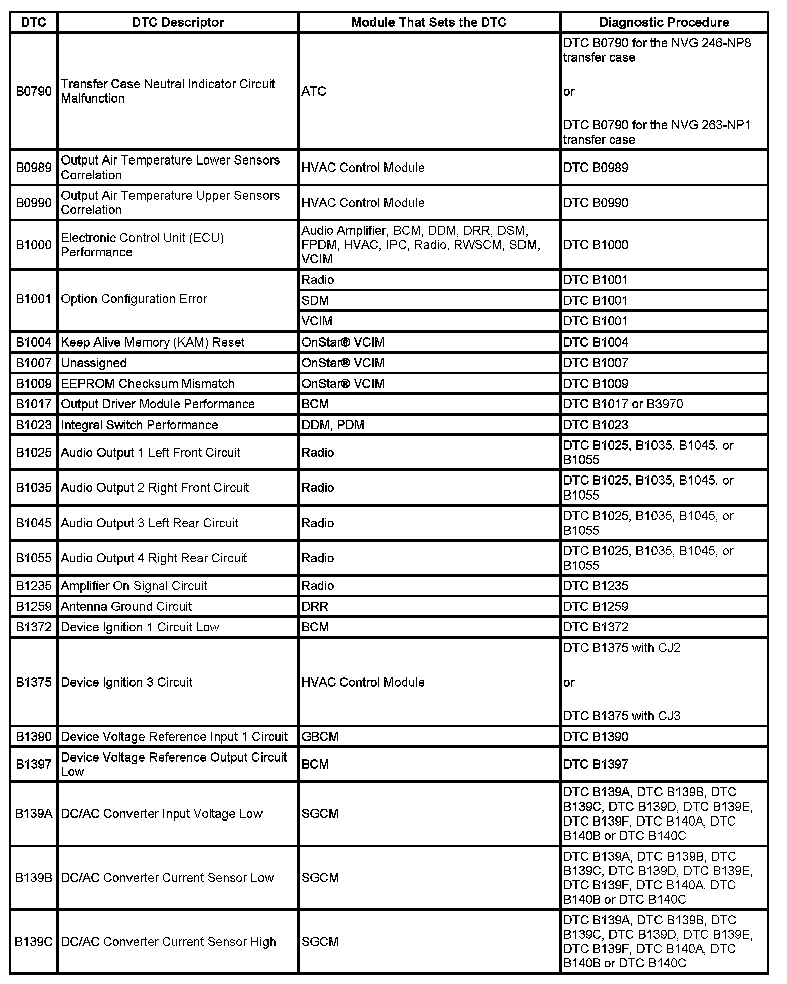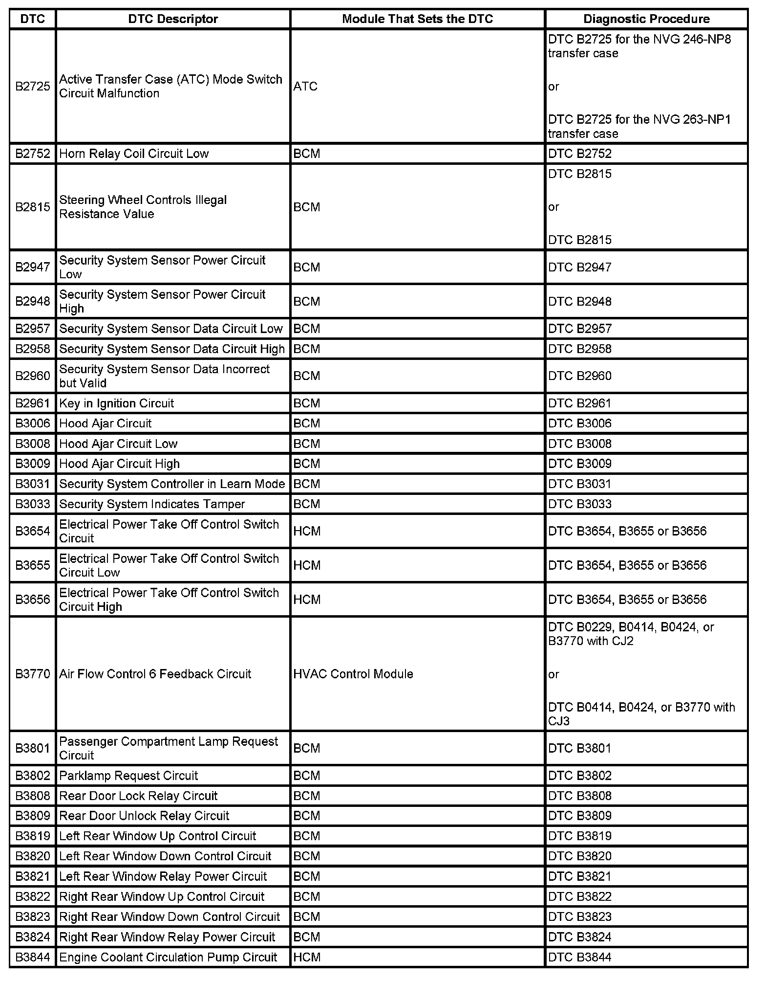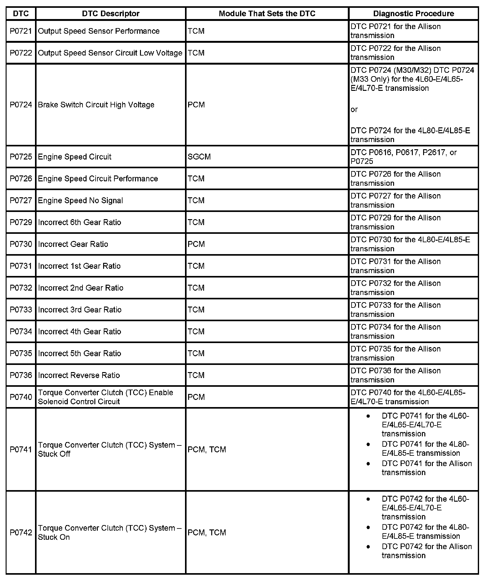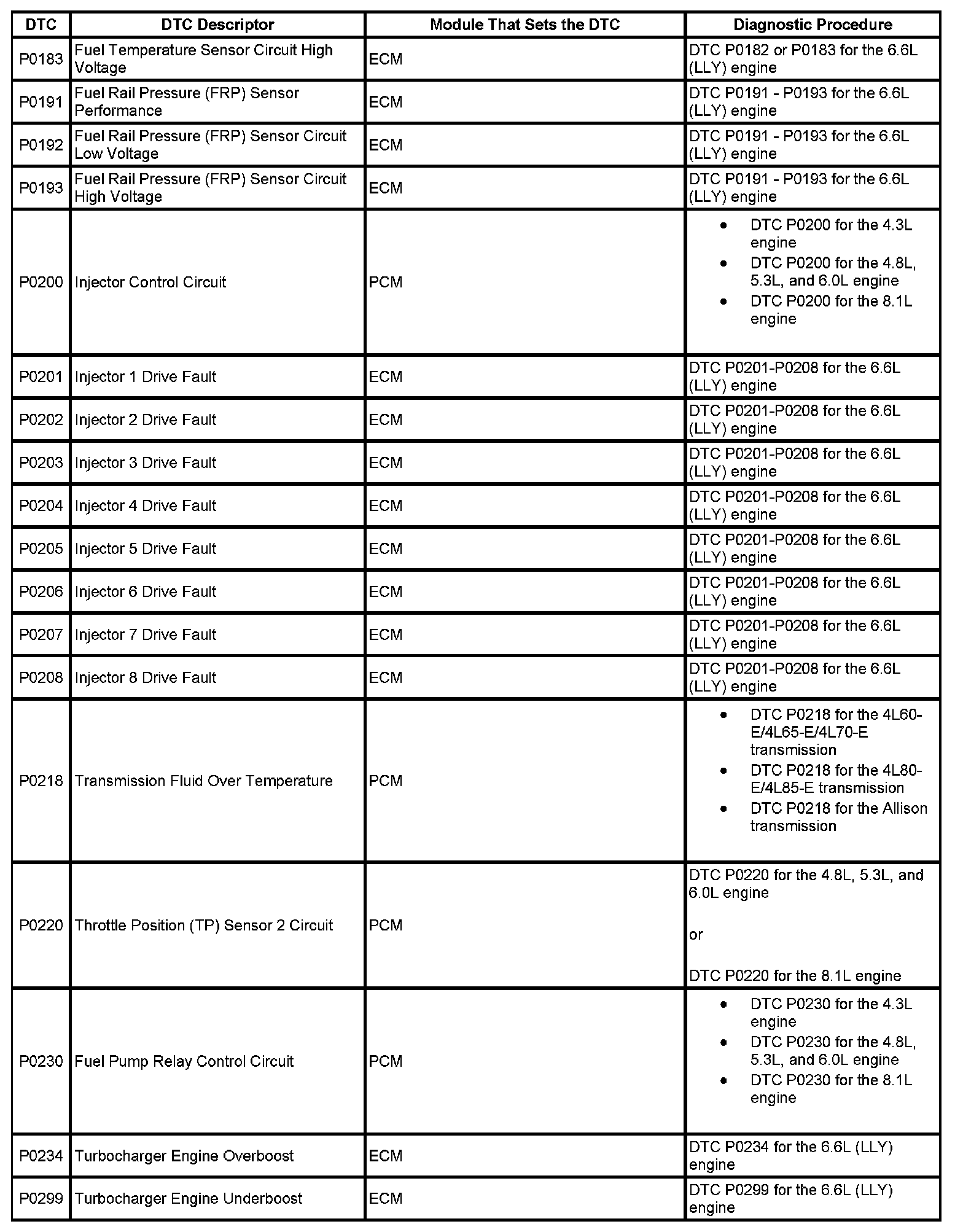 This master DTC list includes all applicable DTCs in alphanumeric order with descriptors.