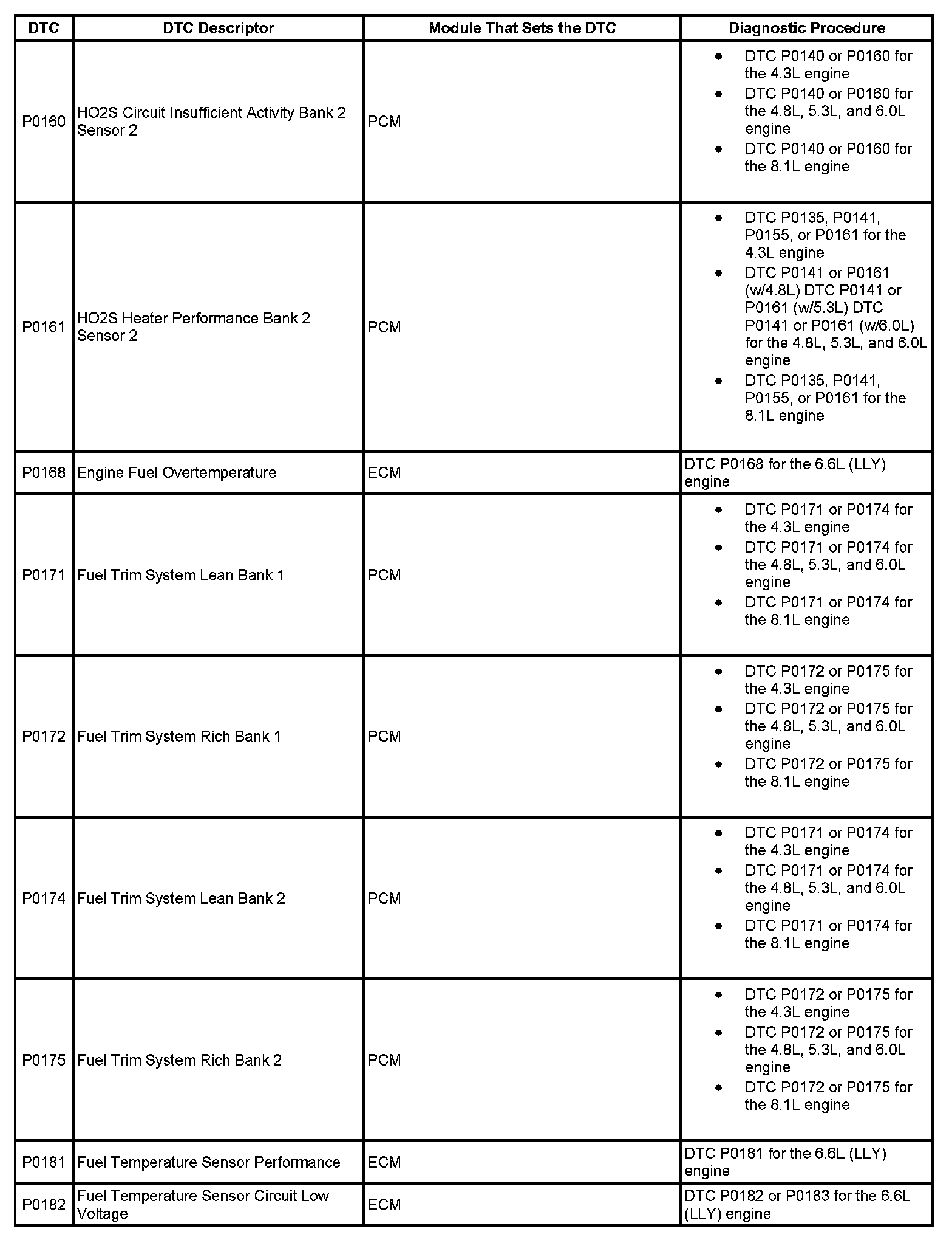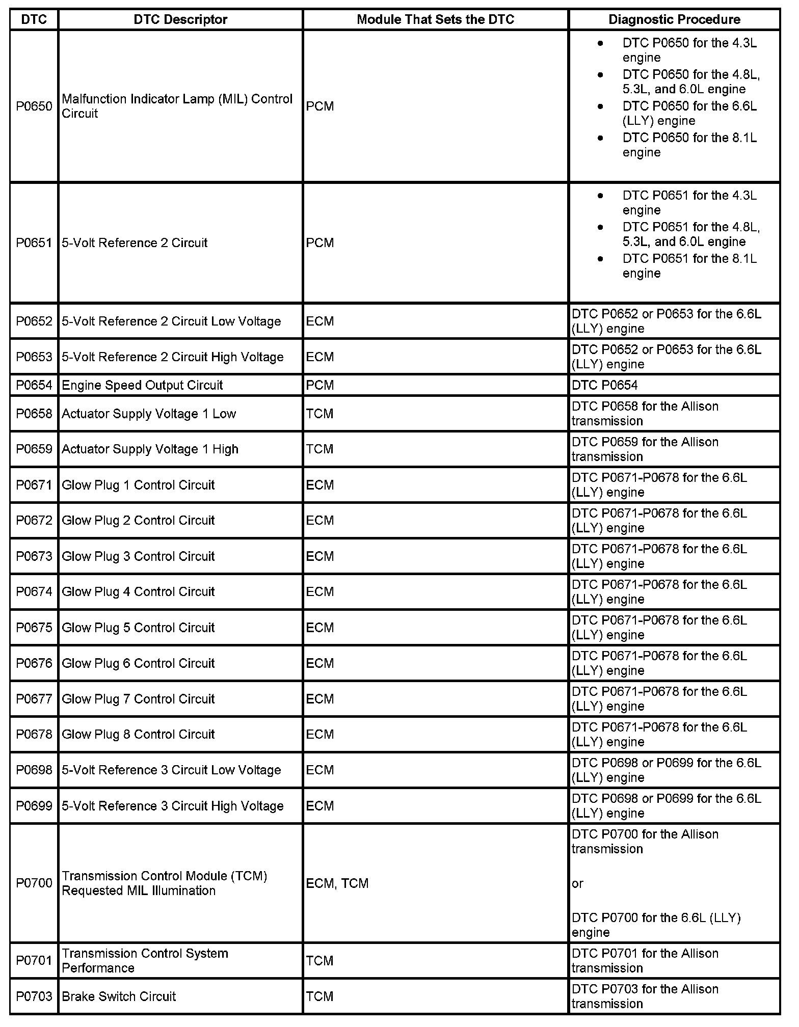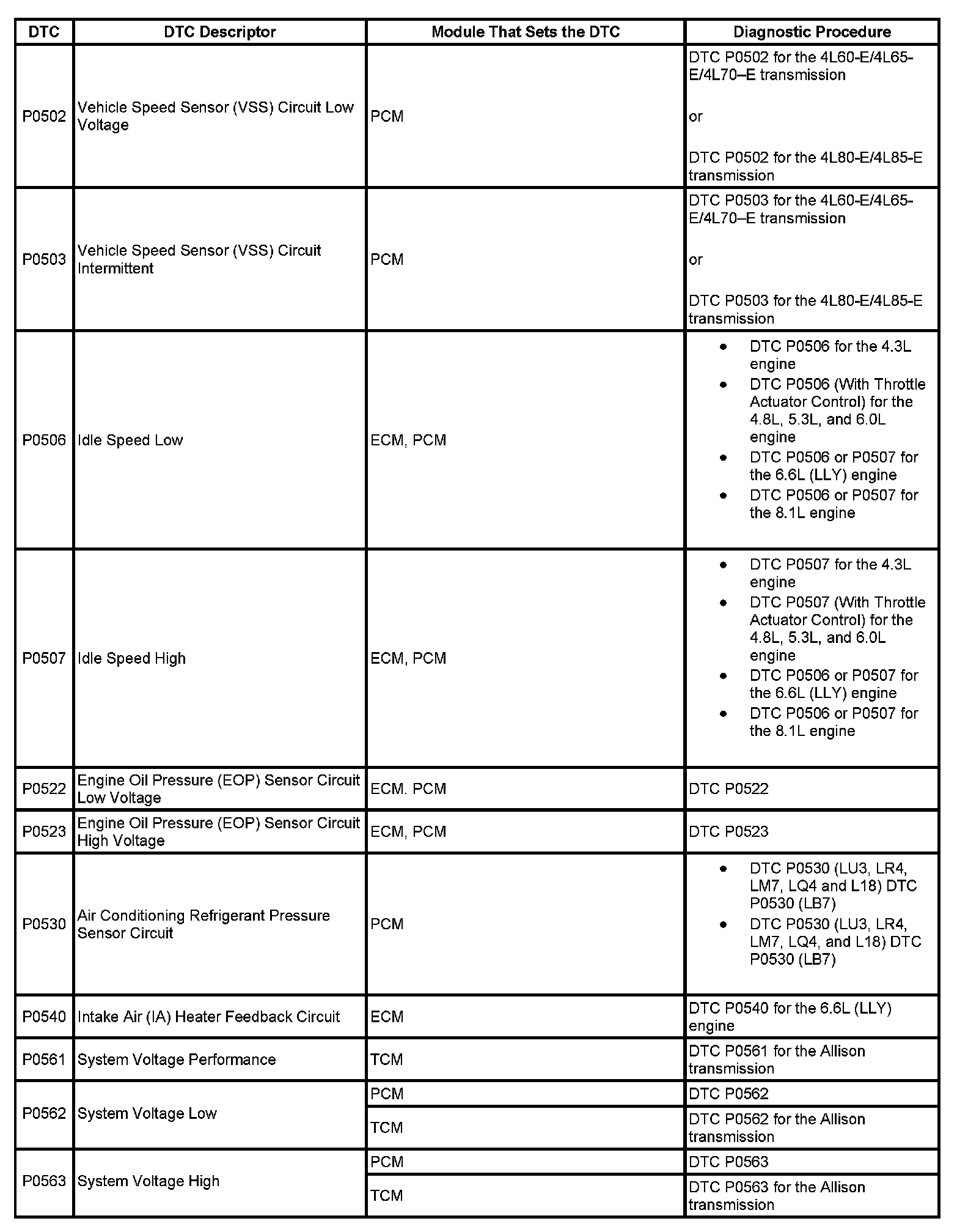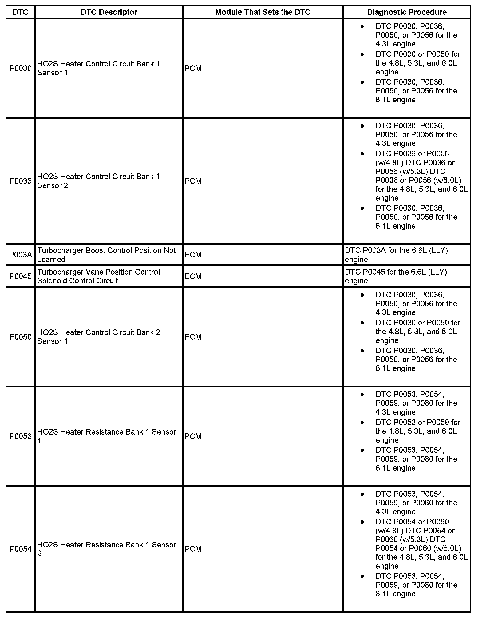 This master DTC list includes all applicable DTCs in alphanumeric order with descriptors.