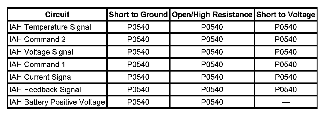 - If the IA Heater Driver Shorted Open parameter displays Fault, replace the intake air heater.
