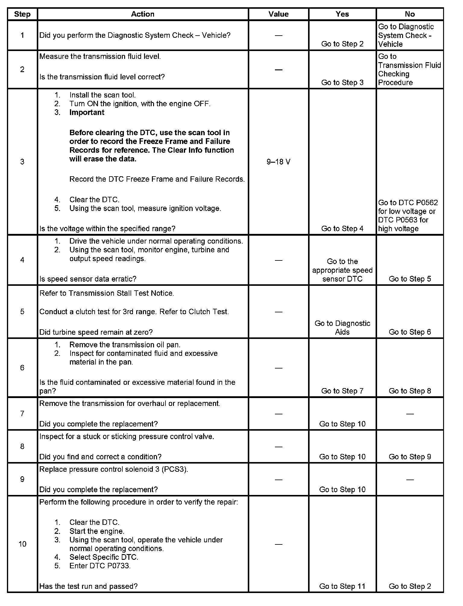 DTC P0733 sets when the calculated 3rd range ratio, steady state, differs from the known 3rd range ratio.
