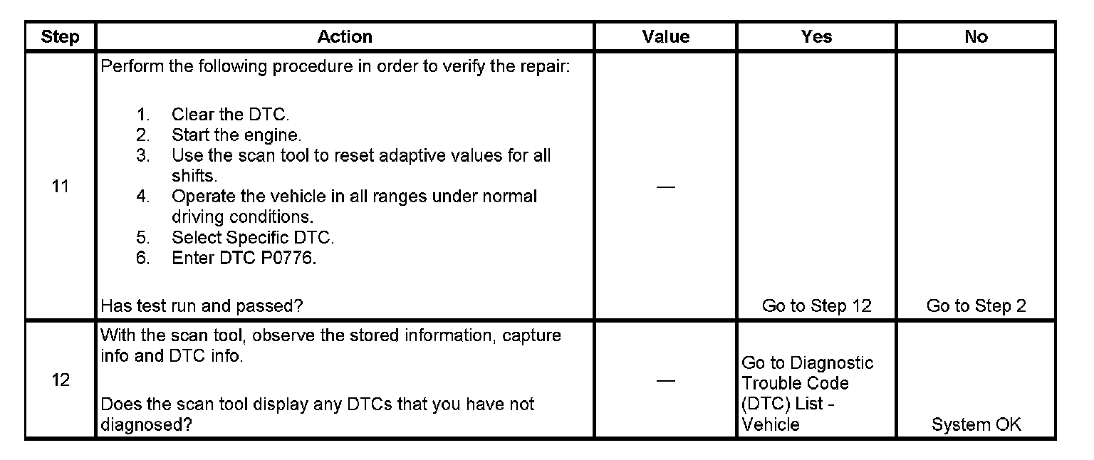DTC P0776 sets when the TCM detects an incorrect oncoming ratio, during a forward range shift, for an accumulated number of occurrences.