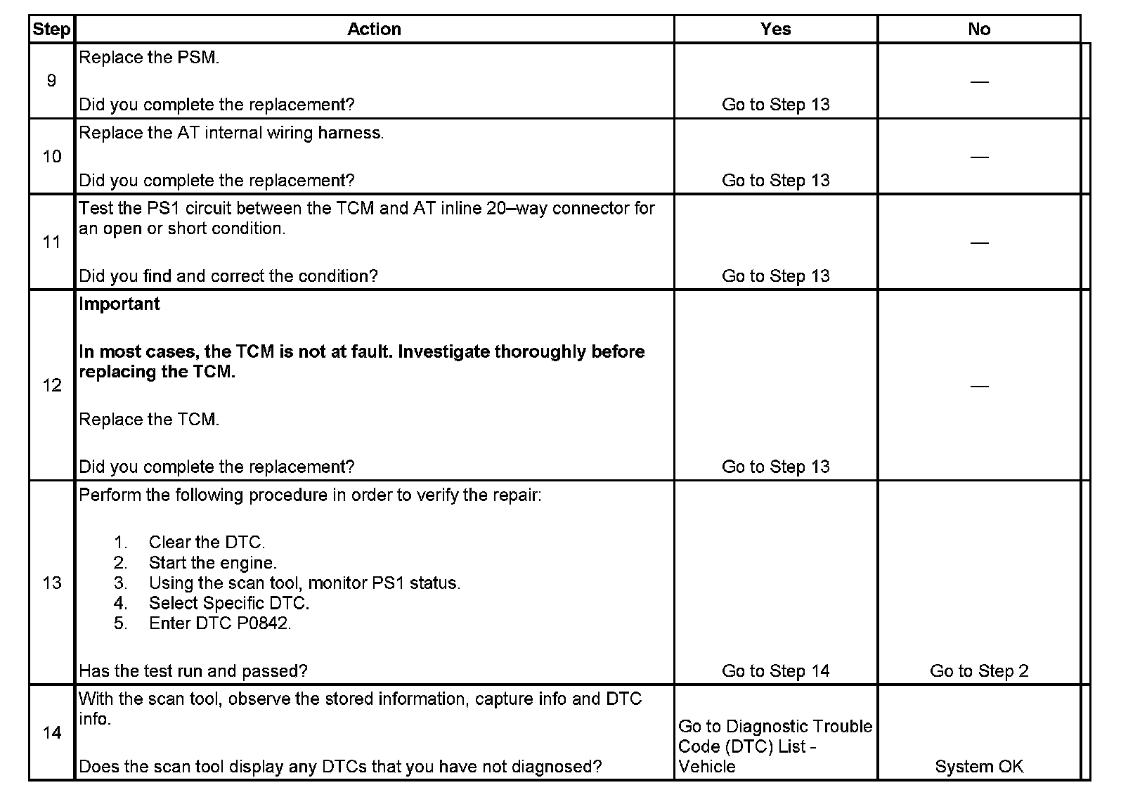 ^ When DTC P0752 and P0842 are set in combination, this may indicate a short to ground at the pressure switch circuit or the shift valve is stuck in the stroked state.