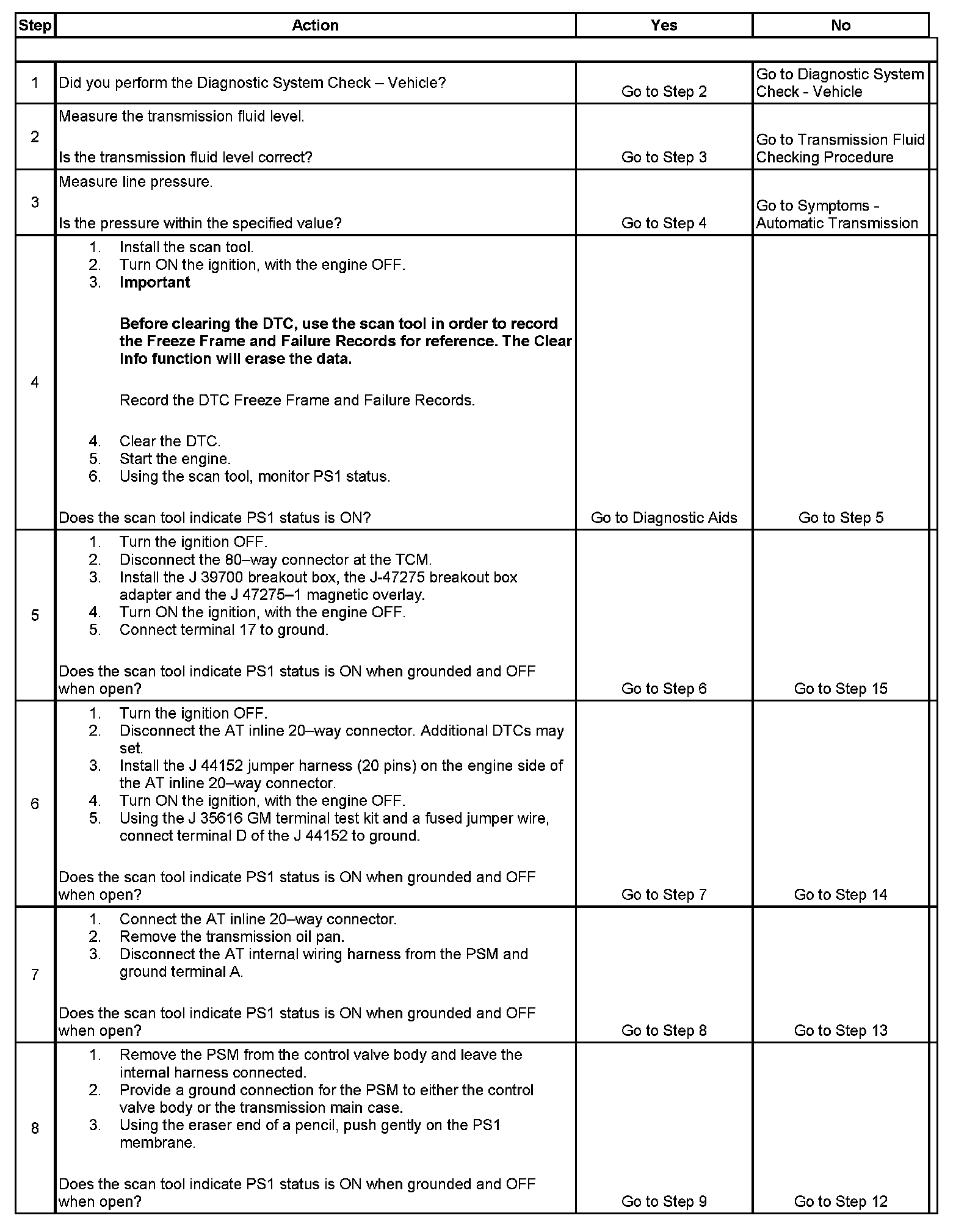 8. This step tests the PSM for a failed condition.