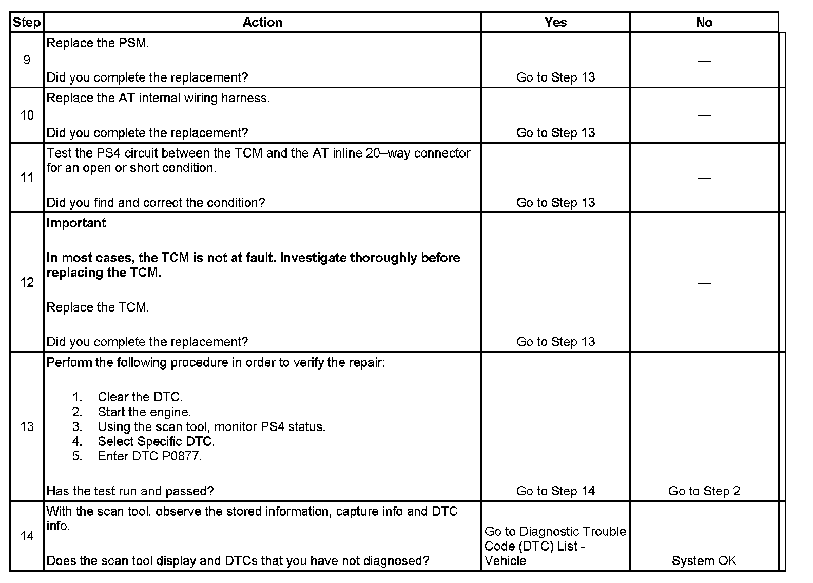 ^ DTC P0877 is stored in TCM history.