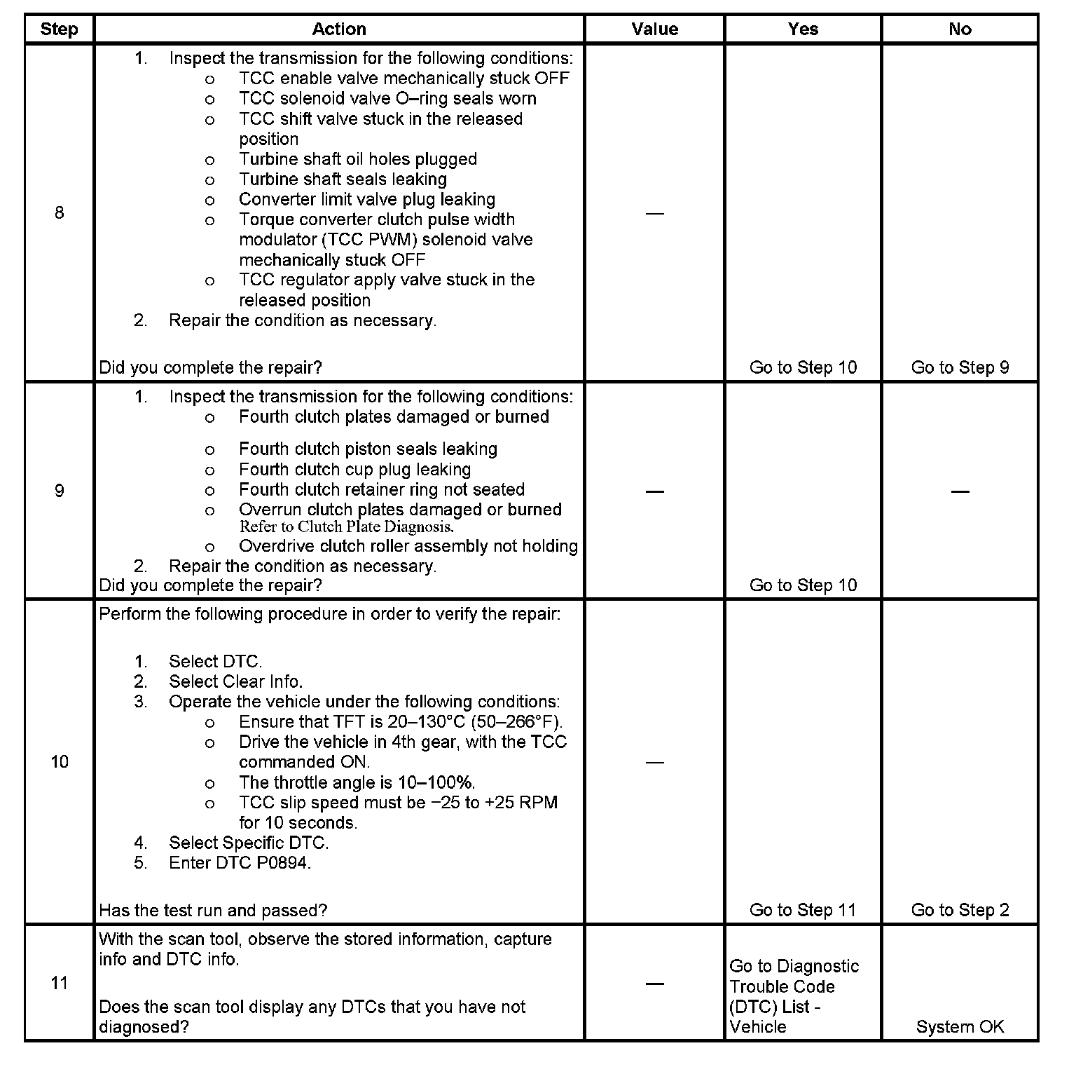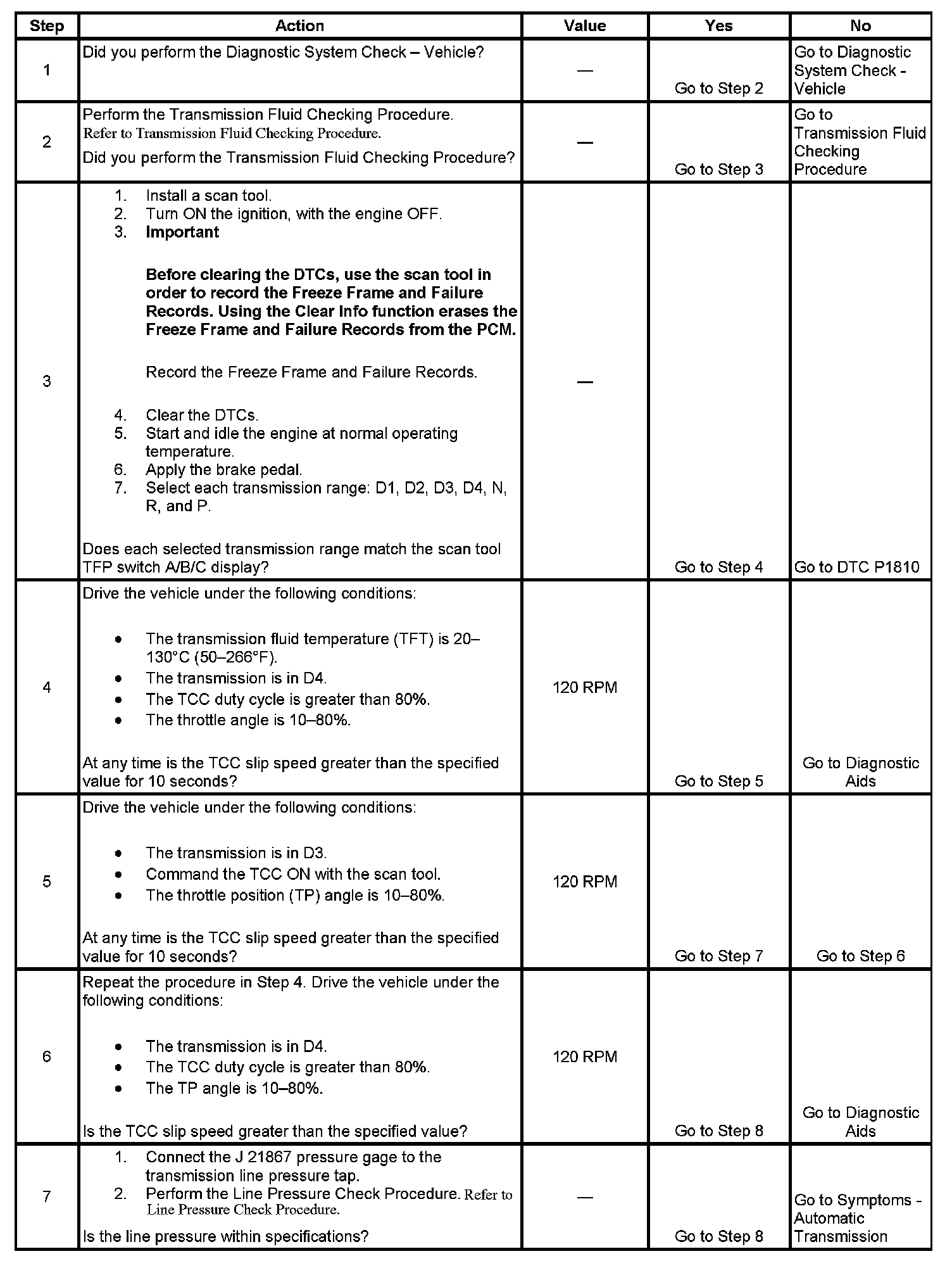 5. This step tests for excessive TCC slip speed while in a commanded TCC lock-up state and in third gear.