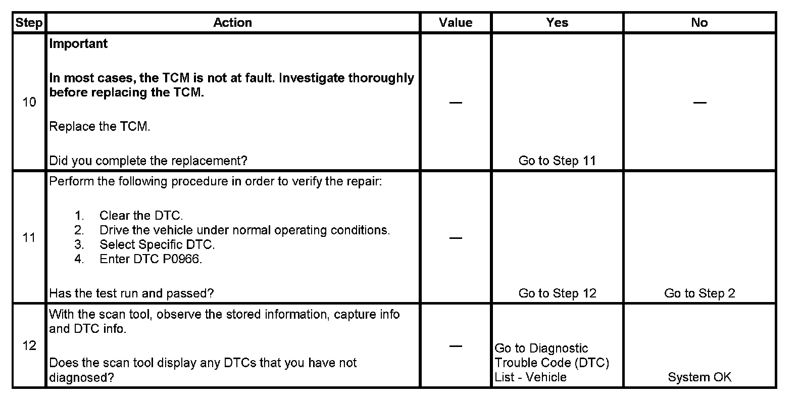 DTC P0966 sets when the TCM detects a short to ground on the PCS2 circuit for greater than 2 seconds.