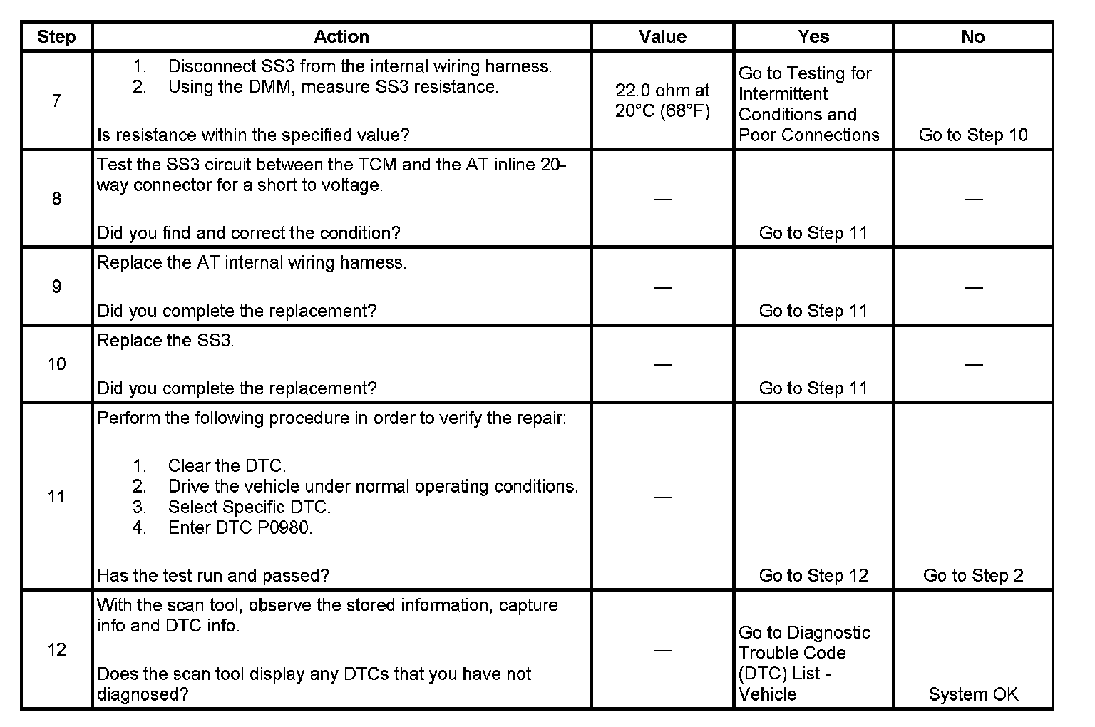 DTC P0980 sets when the TCM detects a short to power in the SS3 return circuit for greater than 2 seconds.