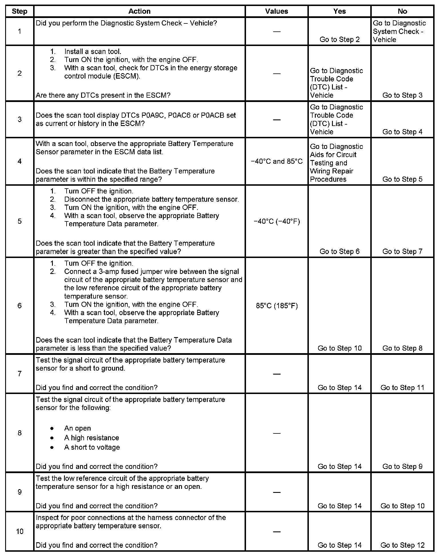 - P0ACD is set when the ESCM has determined that the battery 3 temperature sensor value is greater than 85°C.