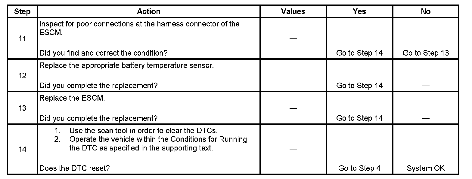 The following DTCs are for the battery temperature sensors located in the energy storage box (ESB) on each battery: