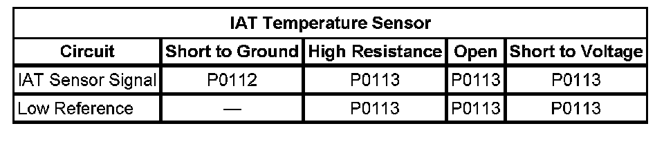1. If DTC P0112, P0113, P0097, or P0098 are set, refer to Diagnostic Trouble Code (DTC) List - Vehicle. Diagnostic Trouble Code Descriptions