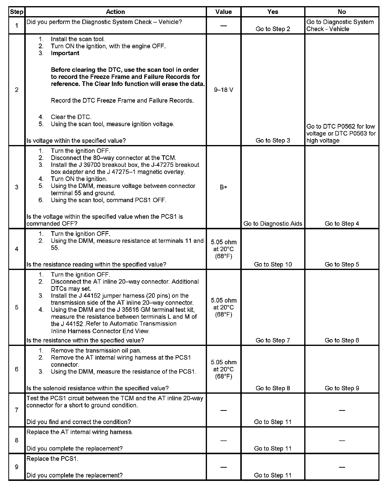 DTC P2729 Pressure Control Solenoid 1 (PCS1) Control Circuit Low (A)