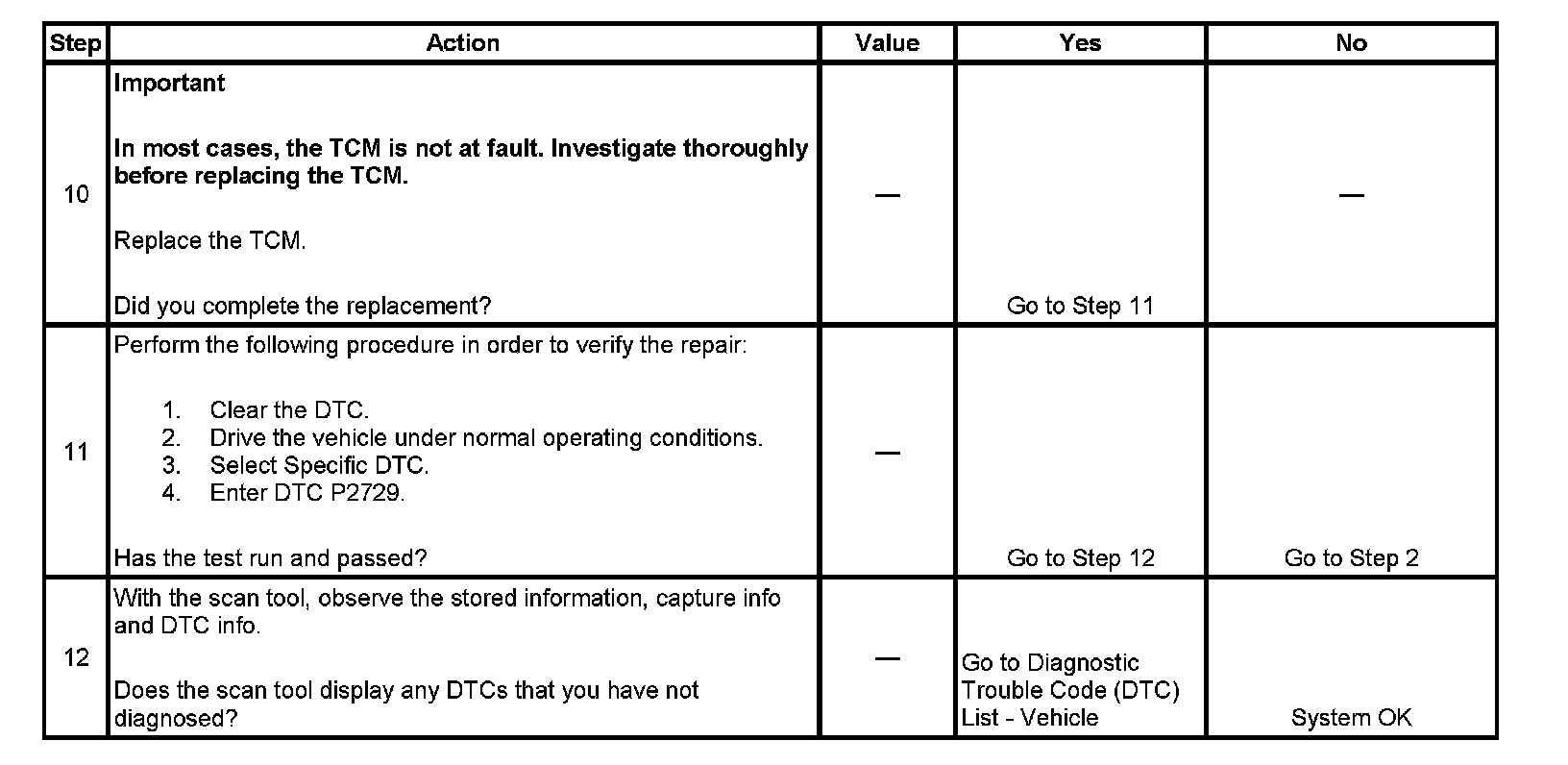 ^ DTC P2729 is stored in TCM history.