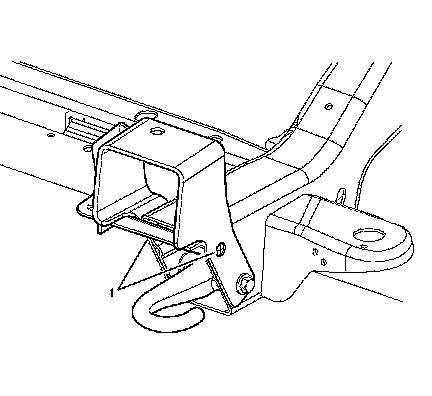 4. Align the replacement bracket lower bolt holes with tow hook mounting locations and install the bolts (1) supplied.