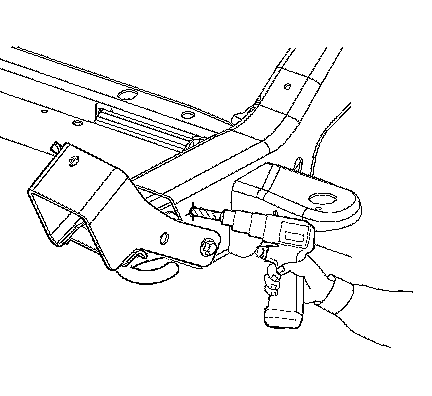 6. Rotate the bracket forward and drill 13 mm (1/2 in) holes in frame at upper bolt locations.