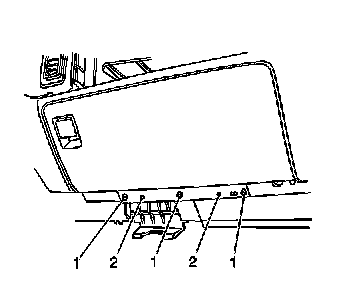 3. Remove IP storage compartment door retaining screws (1) from the instrument panel.