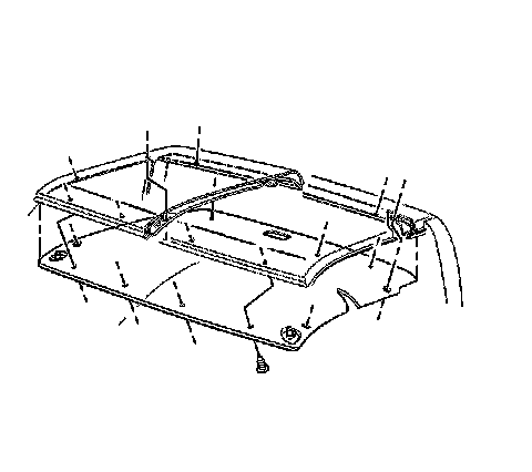 13. If replacing the crew cab headliner, remove the rear window from the vehicle. Refer to Rear Window Replacement (Pickup) in Heated Glass Element.