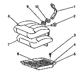 1. Remove the seat cushion trim cover (8) and the pad (7).