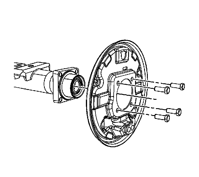 1. Position the backing plate on the rear axle housing.