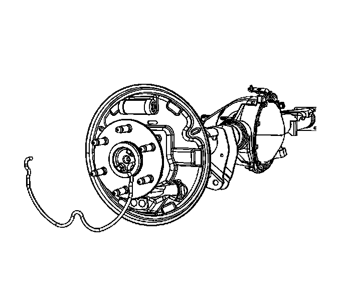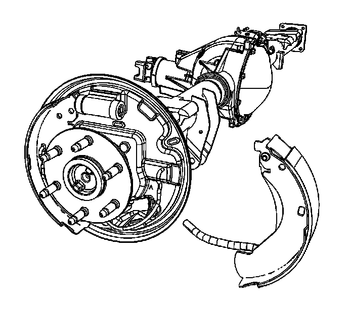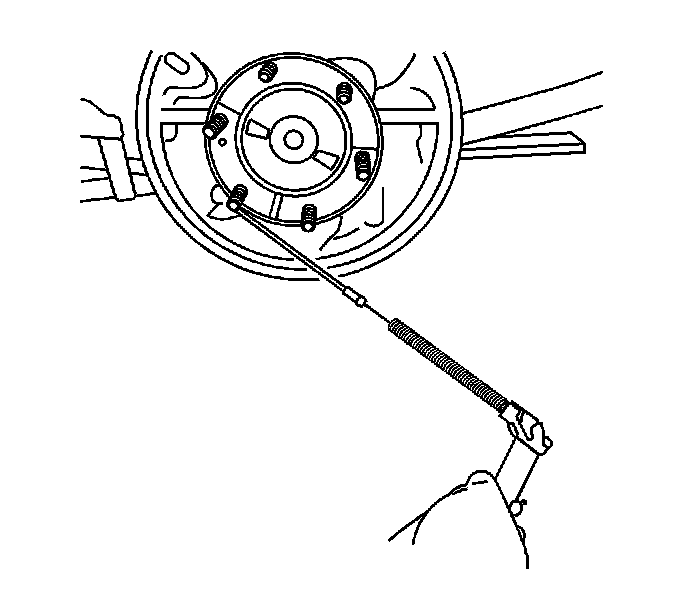 12. Important: When removing the park brake cable from the lever, the park brake return spring will remain attached to the lever. DO NOT remove the return spring from the lever. If the return spring becomes separated from the lever, replace the rear brake shoes. The lever is part of the brake shoe assembly.