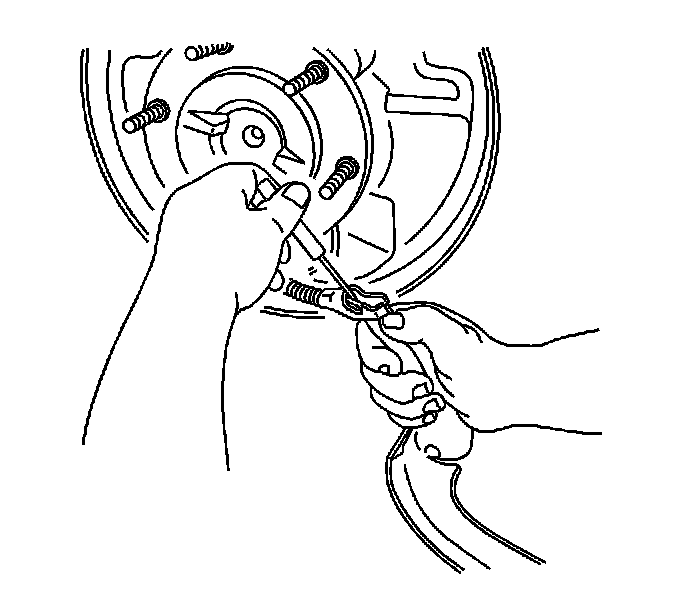 6. Using J 38400 or equivalent, install the retractor spring in the secondary brake shoe.