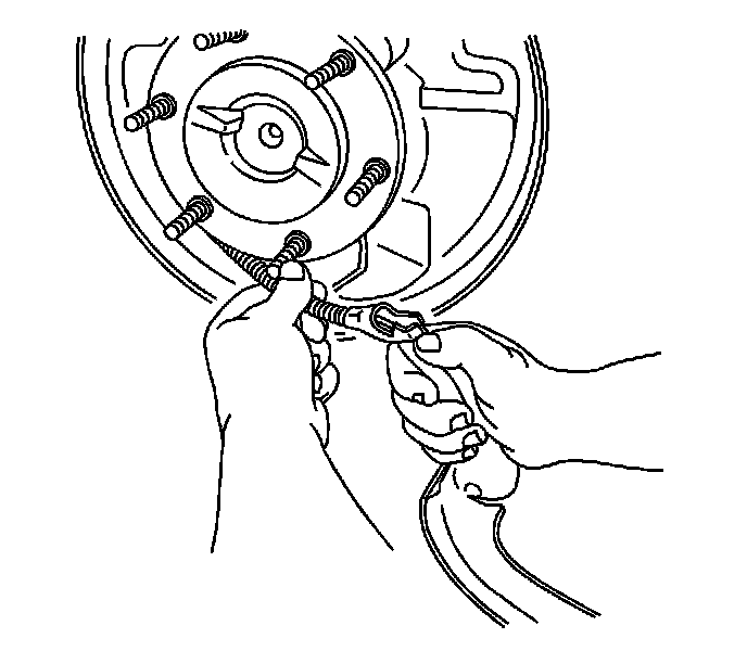 Install the retractor spring on the backing plate.