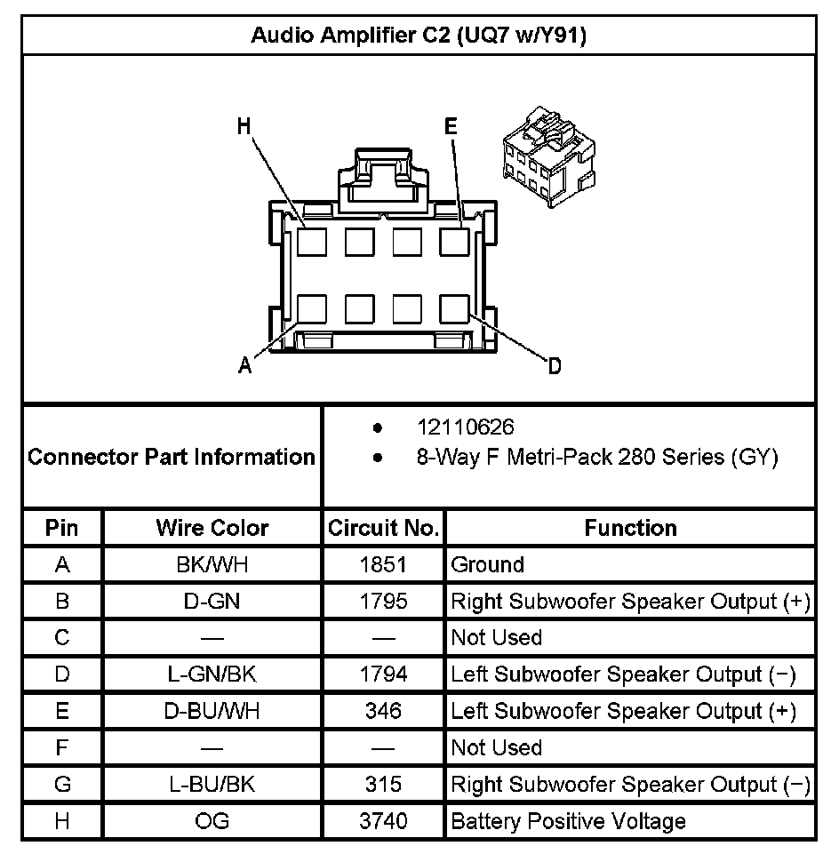 Audio Amplifier C2 ((With RPO Code UQ7 Without RPO Code Y91):