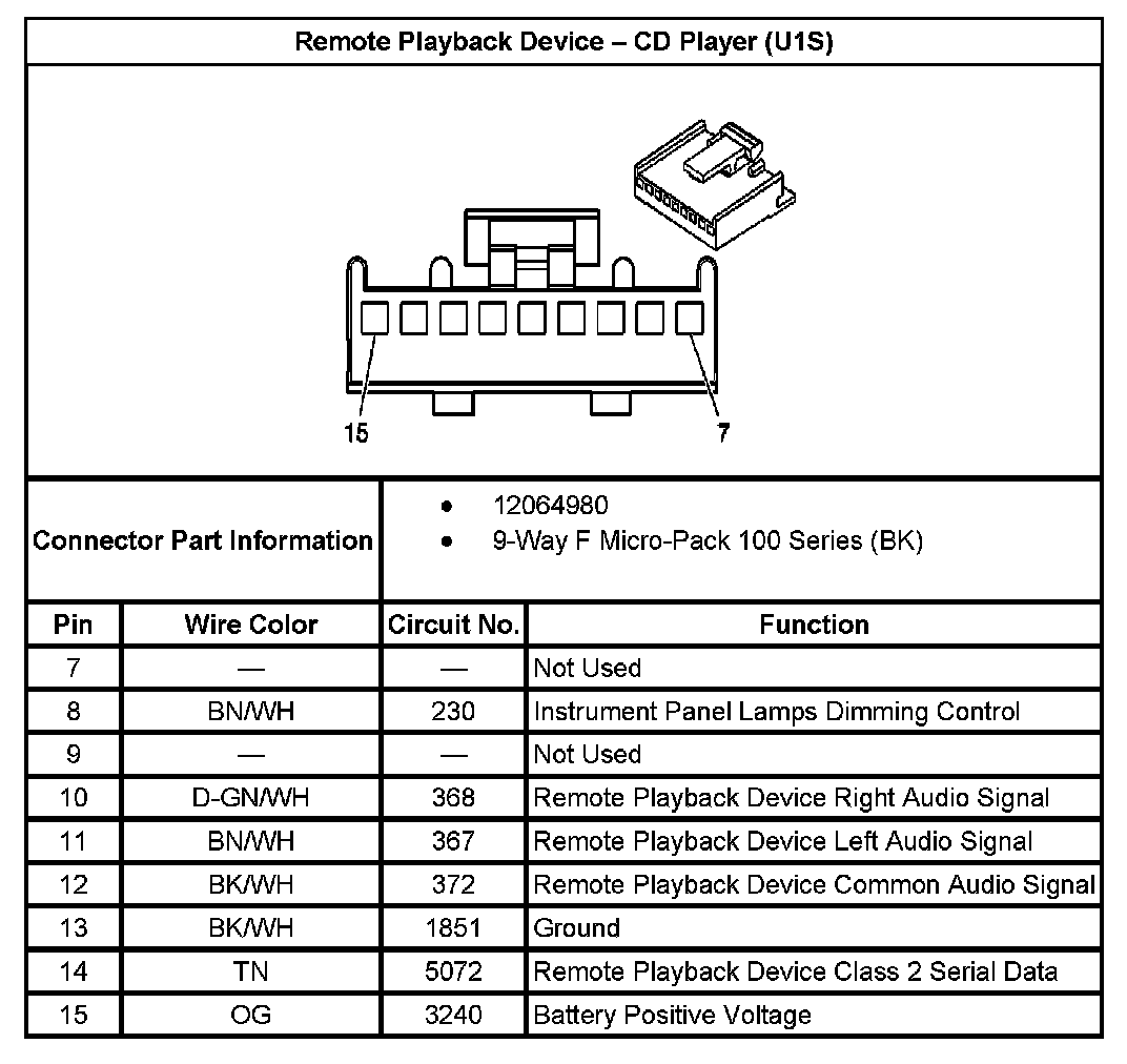 Remote Playback Device - CD Player (With RPO Code U1S):