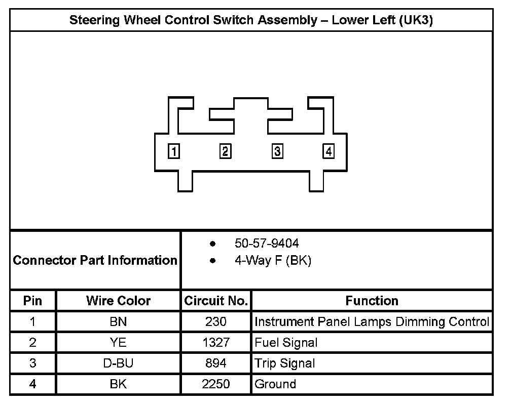Steering Wheel Control Switch Assembly - Lower Left (With RPO Code UK3):