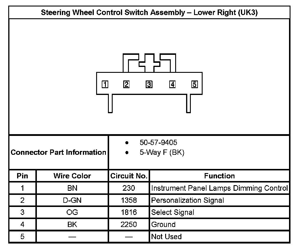 Steering Wheel Control Switch Assembly - Lower Right (With RPO Code UK3):